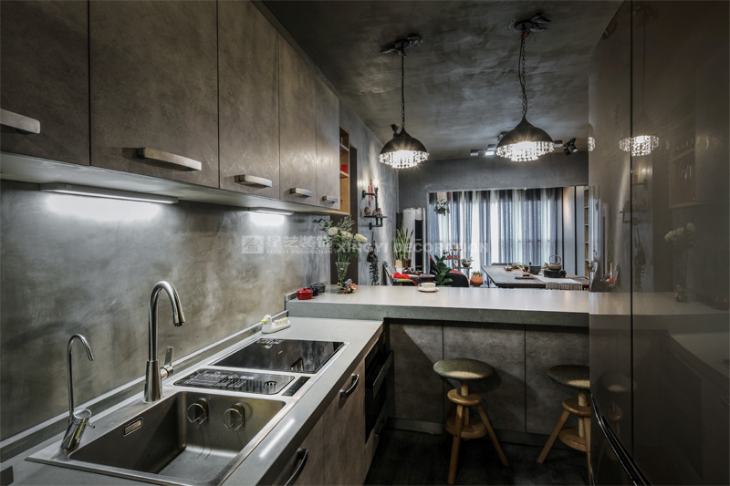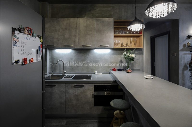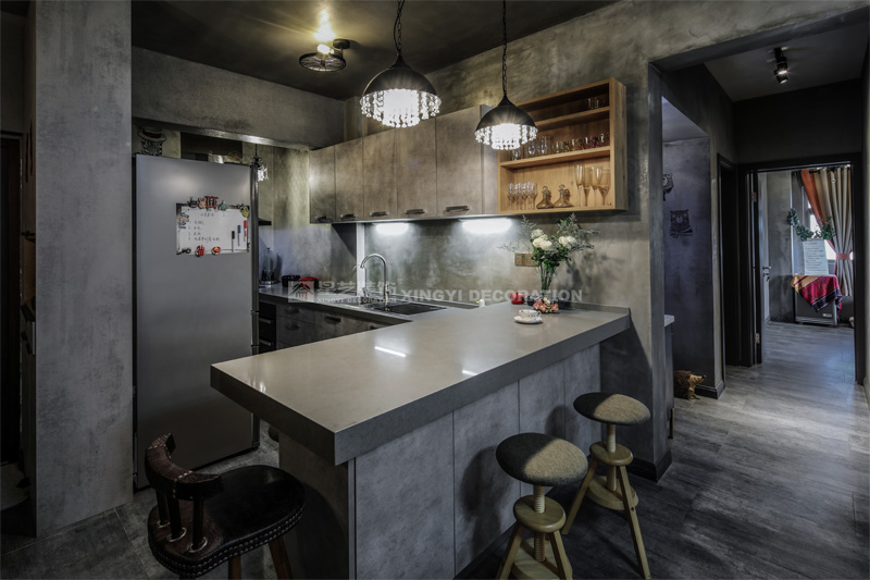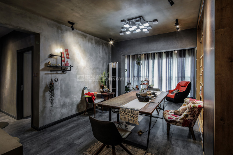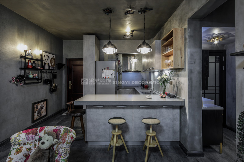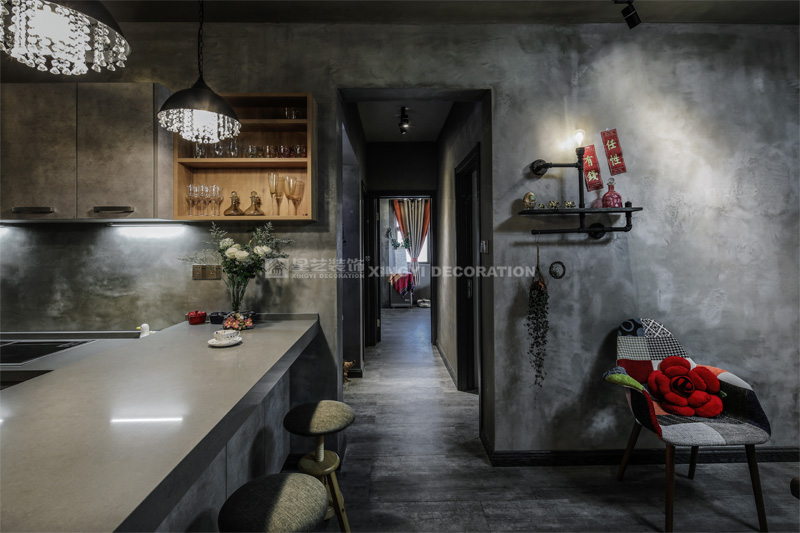 南寧星藝裝飾陶佳彤設(shè)計師專業(yè)設(shè)計的霖峰壹號90平工業(yè)風(fēng)裝修實景完工案例,本案位于霖峰一號,屬于鳳嶺北地帶。業(yè)主是兩位中年夫妻,一個男孩。對于生活品質(zhì)要求比較高,生活上飲食用具喝茶都是用銀壺和銀筷子。那業(yè)主是一位酷愛旅游喝茶和運動的文藝女青年,這個房子是用來偶爾度假休閑用的。所以整個空間里面看不到有沙發(fā)存在,剛才是接觸業(yè)主的時候,提到幾點,收納空間一定要多,不需要餐桌和沙發(fā)。每天都需要泡個美容澡。在布局上就把原來的陽臺封起來沒做成浴缸區(qū)域,那廚房和餐廳就可以連起來做成吧臺和櫥柜一體的造型??蛷d區(qū)域做成滿滿一幅收納柜子滿足業(yè)主喝茶時候把所有的茶具,又可以做展示偶然。原來的大陽臺也納入客廳喝茶區(qū),整個視覺都開闊起來了。清風(fēng)吹起,香爐里的檀香,伴隨著音樂和業(yè)主泡好的茶,那就是人生的一個享受。
