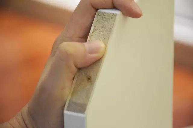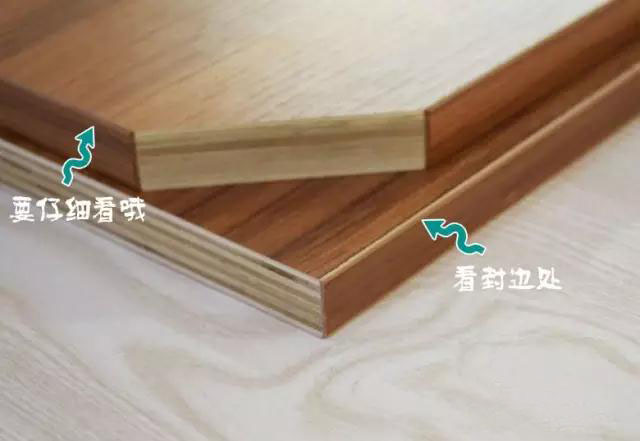 一、觀察橫截面每一層板的粘合是否細膩、結實,可以用拇指指甲用力壓下,能輕易按下去,或者扣得到木屑掉下來的,都不是好貨;