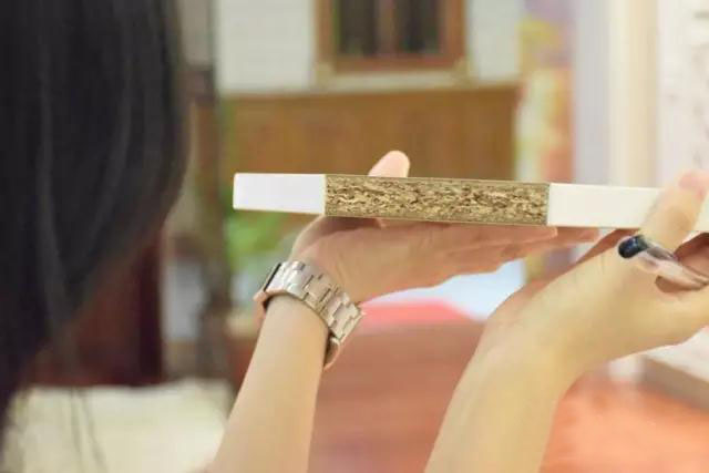你還可以去摸橫截面的光滑度,好的實木顆粒板摸上去也是很平滑的,不會有雜質。