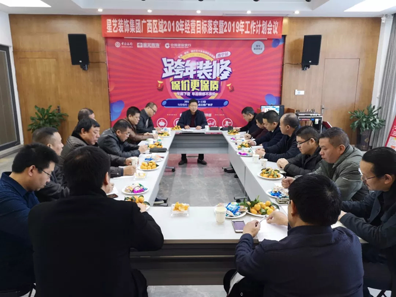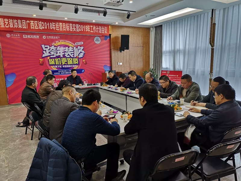 2018年12月17日,在星藝裝飾廣西總部迎來了一次極具重要意義的會議——星藝裝飾廣西區(qū)域2018年經(jīng)營目標落實暨2019年工作計劃會議成功召開;集團領(lǐng)導周曉霖、大區(qū)總監(jiān)徐橘、區(qū)域負責人凌峰、劉英華、宋立宏、張鄭承,以及各分公司經(jīng)理參加了本次會議。會議由集團領(lǐng)導周曉霖主持。
