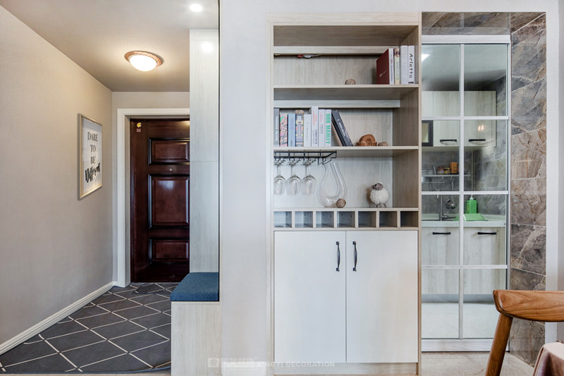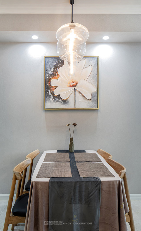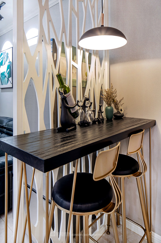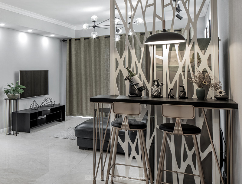陸小姐是一個性格靦腆的90后女孩,她是一名牙科醫(yī)生,一雙炯炯有神的大眼睛中透露出她的溫柔嫻靜,這也是她給我的第一印象,她喜歡的風格是以“極簡主義”著稱的北歐風格,北歐風格擅長以線條和色塊來呈現(xiàn)自然舒適的干凈之美?!兜赖陆洝酚性疲骸拌彂綦灰詾槭?,當其無有室之用。故有之以為利,無之以為用”,常用到的裝飾材料有石材、玻璃、滕、棉麻等材質以及大自然中的元素,餐廳區(qū)域掛著的植物油畫就是現(xiàn)代與自然元素的結合加上暖色光源的映襯使得整個餐廳氛圍立刻活躍起來,玄關處的屏風和吧臺組合不僅讓整個家居功能“有用”,更輕松隨性且解決了一些風水上“有利”的問題。