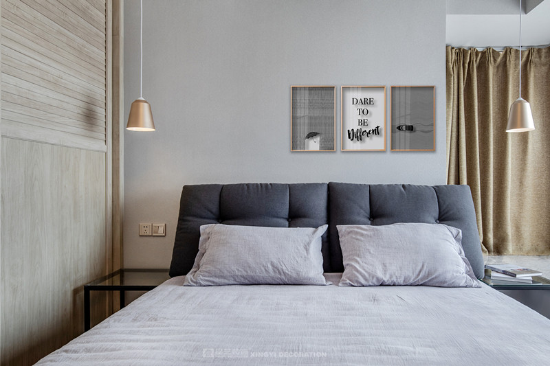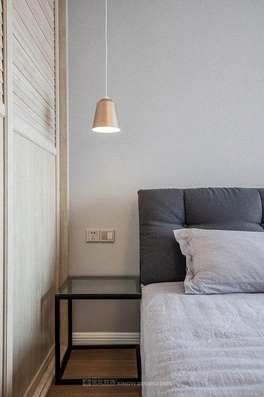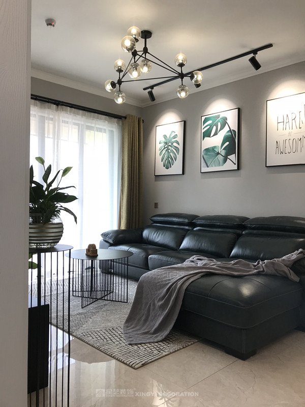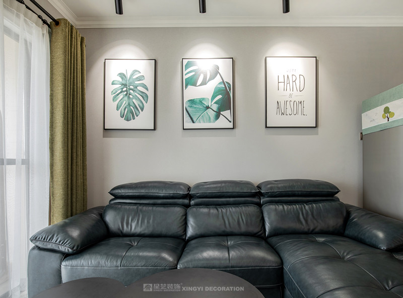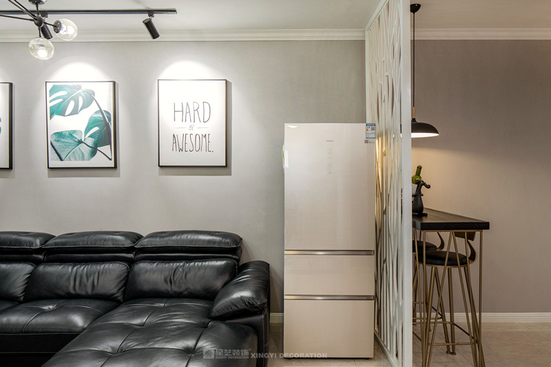 另外,常規(guī)情況下木質家具或者創(chuàng)意性的家具是北歐風格的首選,但在整個空間中設計師打破了常規(guī),原木質家具用皮質家具和黑色鐵藝家具來代替結合大面積的灰色墻面搭配柔和的暖白色燈光營造出另一種低調的寧靜感,沉穩(wěn)而內斂。在快節(jié)奏的生活中找到一份片刻的寧靜,過簡單的生活。