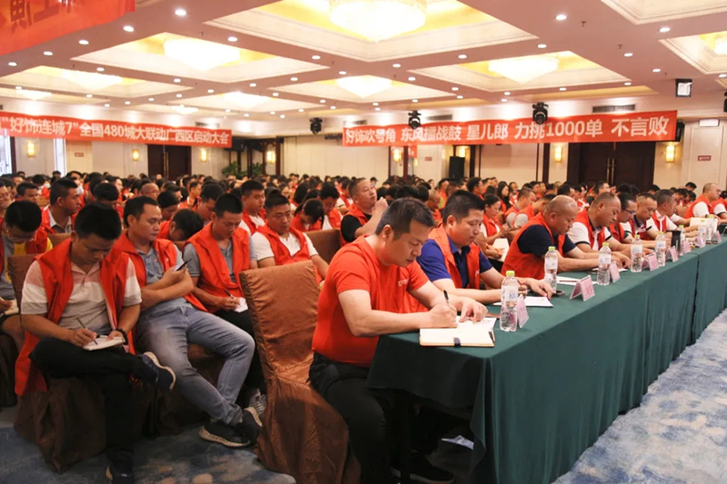 9月4日,星藝裝飾“好飾連城7全國480城大聯(lián)動(dòng)·廣西站”(以下簡稱好7)培訓(xùn)啟動(dòng)會(huì)在南寧金旺角國際大酒店盛大舉行,來自南寧、桂林、柳州、貴港、北海等各分公司,30多家南寧星藝聯(lián)盟建材商代表共計(jì)500余人歡聚一堂。