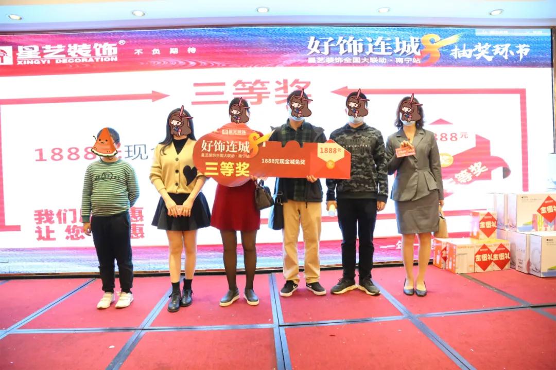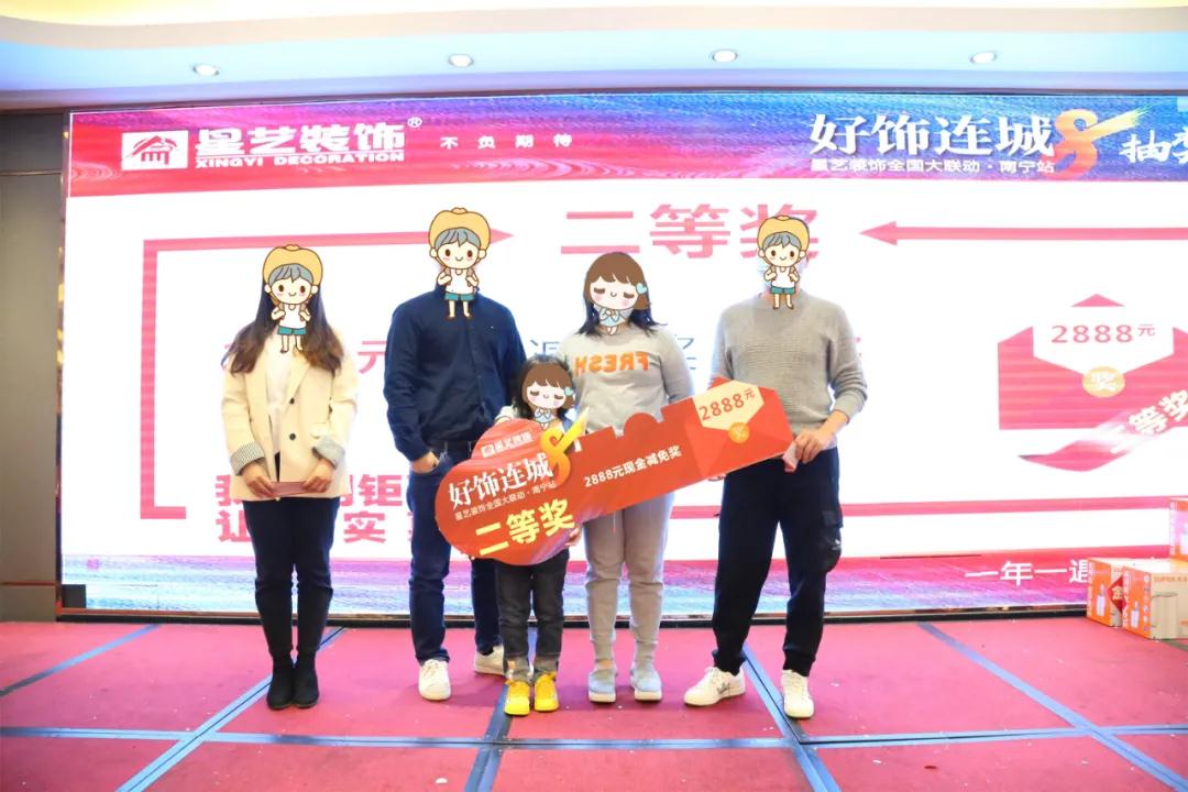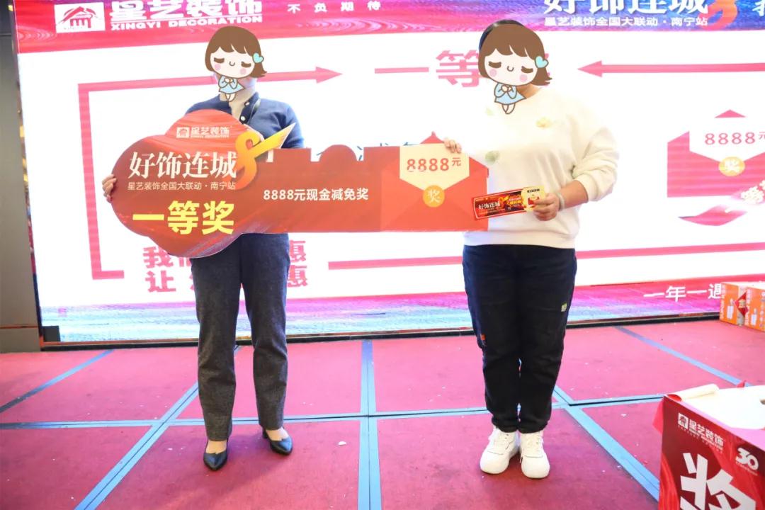 11月14日,隨著一名凱悅國際業(yè)主抽中了“好飾連城8(南寧站)”18888現(xiàn)金大獎,星藝裝飾全國480多城聯(lián)動的“好飾連城8”南寧站在南寧紅林大酒店三樓(廣林廳)圓滿落下帷幕。