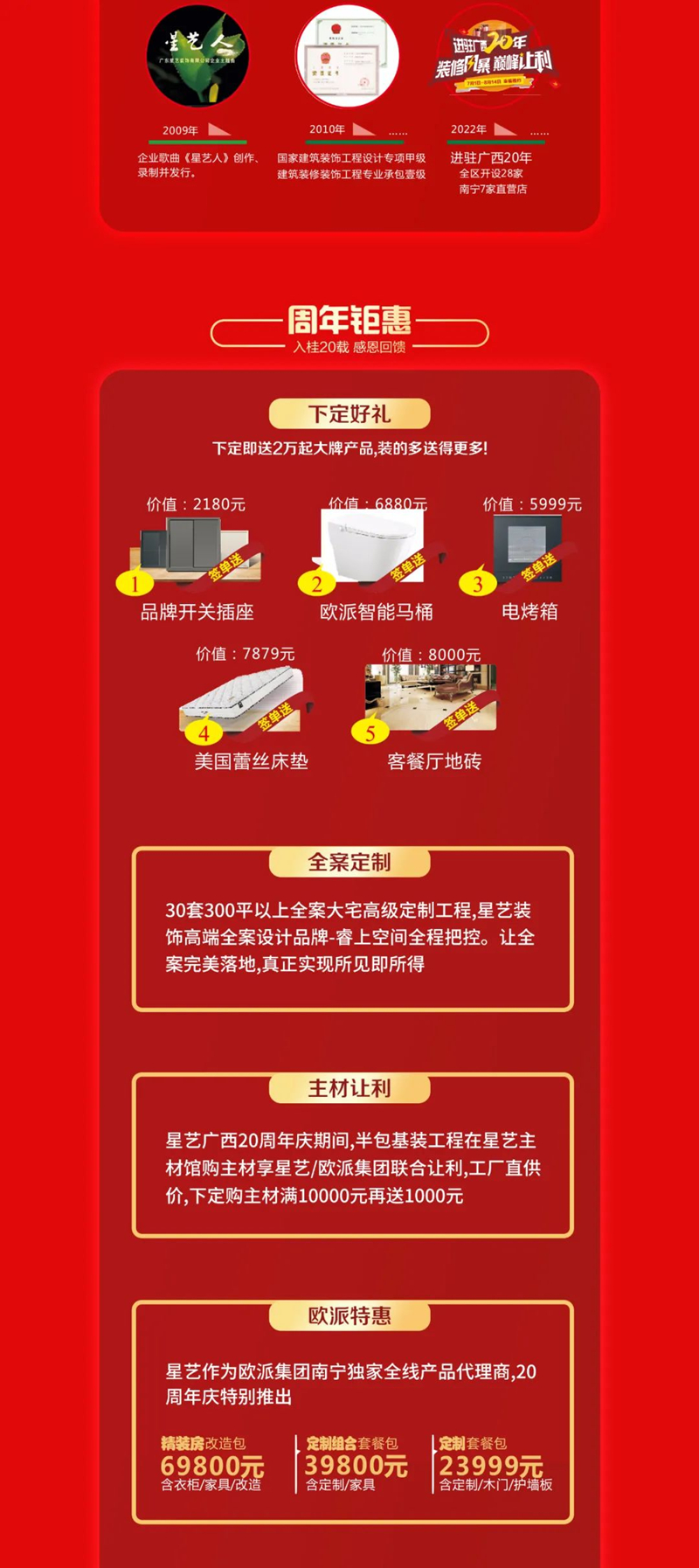 2022年中國星藝第18屆家裝文化節(jié)激情上演,星藝人將以專業(yè)的陣容,經(jīng)典的設(shè)計、貼心的服務(wù)、堅實的品質(zhì)、給力的鉅惠,將一場裝飾文化盛宴,獻(xiàn)禮綠城,具體優(yōu)惠如下: