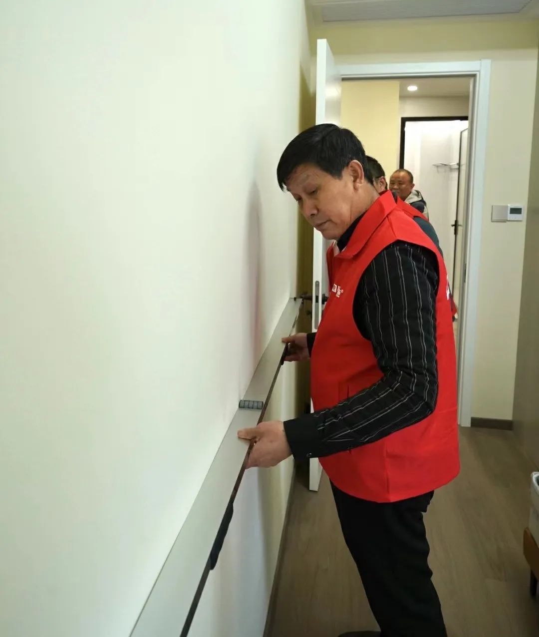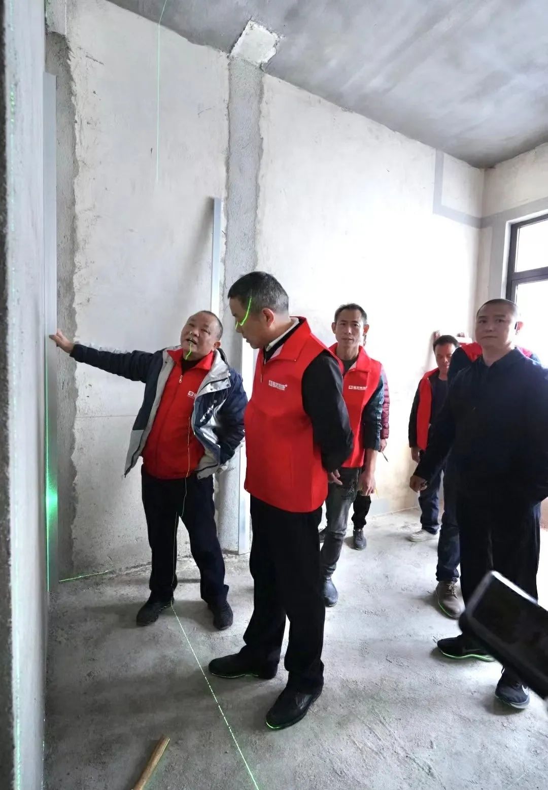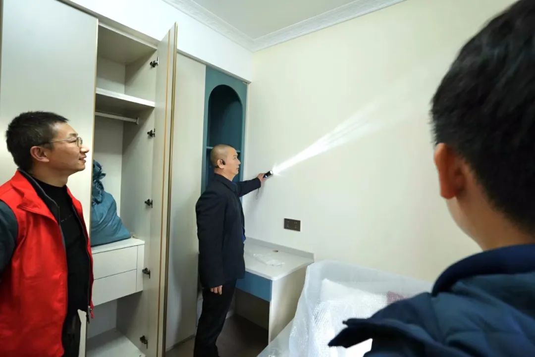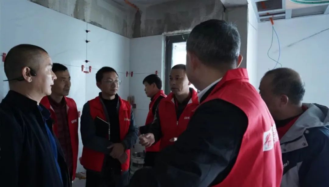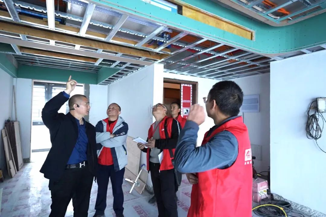 品質(zhì)大宅不僅需要精心設(shè)計、合理規(guī)劃空間布局,更需要高品質(zhì)的施工,在現(xiàn)場,工藝標(biāo)準(zhǔn)經(jīng)驗豐富的張總與現(xiàn)場監(jiān)理、質(zhì)檢以及施工師傅搭手實操交流,墻面找平膩子技巧、門口的收邊工藝、輕鋼骨工藝驗收、水電鋪設(shè)、板材進(jìn)場、衛(wèi)生間廚房貼磚……事無巨細(xì),對每道施工工序改進(jìn)、提升都給出了實用可行的建議。