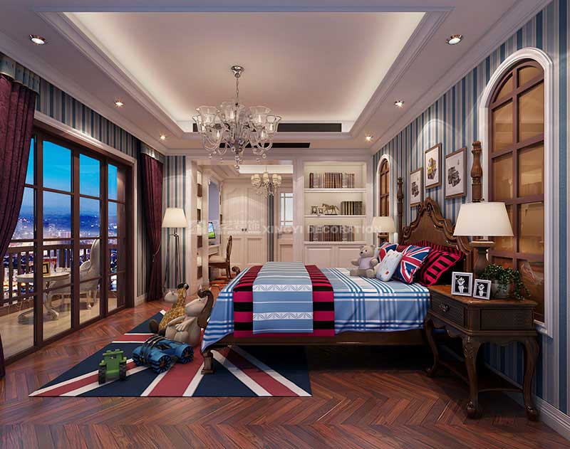 主臥的用色極為大膽,黑色金花墻紙與黑金宮廷風(fēng)格羊毛塊毯令空間尤顯奢華富麗。兒臥的色彩對(duì)比也極為強(qiáng)烈,各式卡通公仔玩偶令空間童趣盎然……移植浪漫,中小戶型依然可以精彩無限