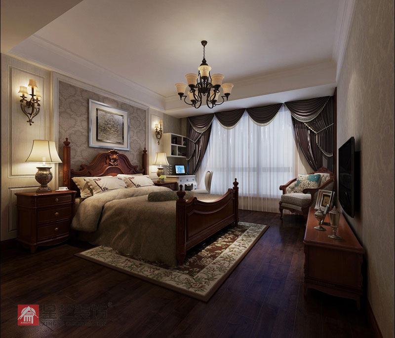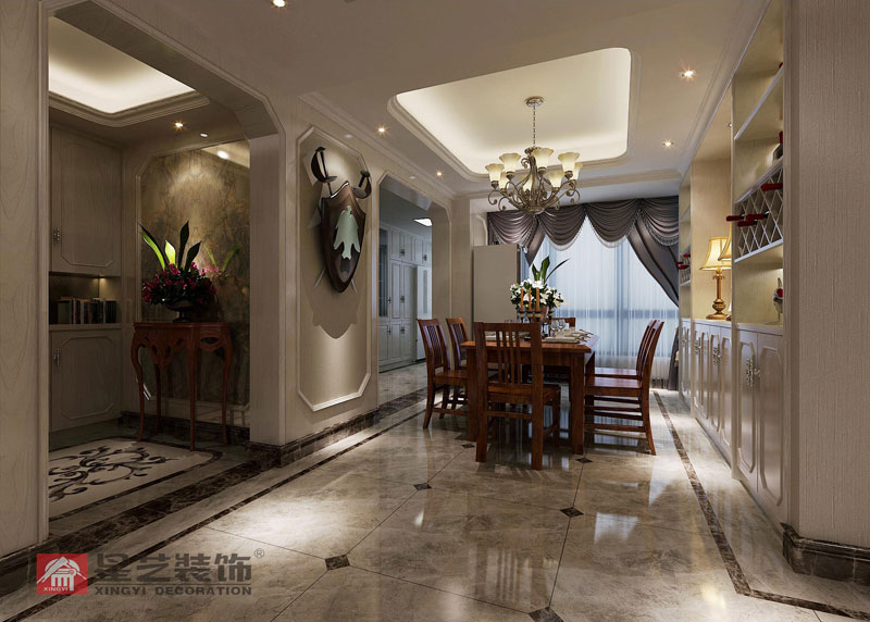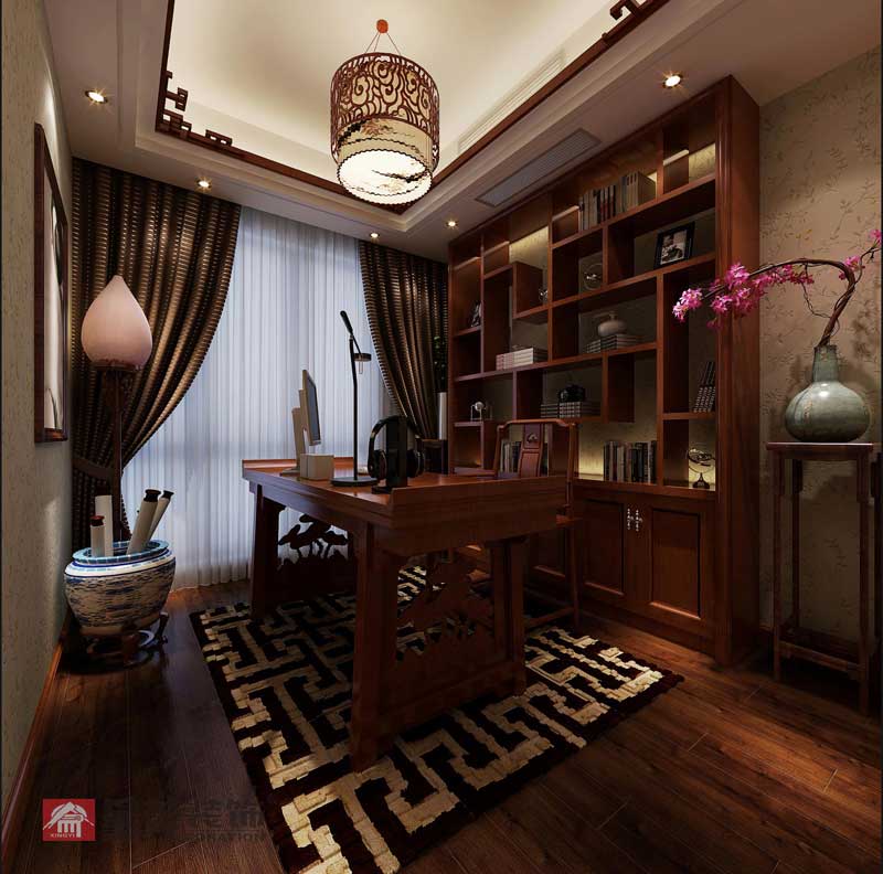 客廳餐廳用線條出來,把繁瑣的中式和棱角都去除,整體以米黃色調(diào)為主,營造一個溫馨浪漫的空間。熱愛國學就必有中式書房,書房是一個單獨的空間,中式書房不會影響整體風格。和中國文化能很好的融合。