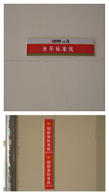 陰陽角標準線的標示;陰陽角標準線是針對墻角,陰角、陽角的標示,檢測原建墻角是否垂直,有無誤差,以便修正。