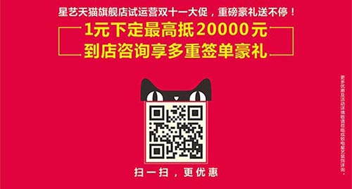 二、簽單有禮:(線上)在星藝天貓旗艦店下定1元,可減1000元工程款,最高可抵20000元,具體如下: