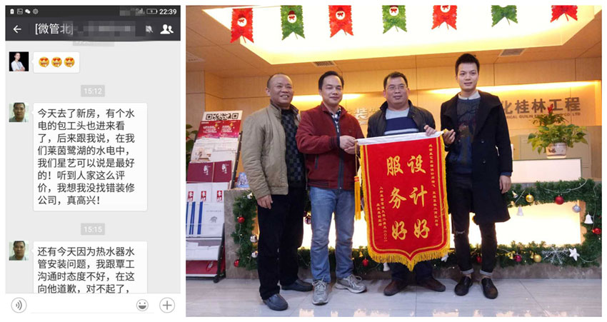 雖然幾個月的裝修過程中有些碰撞,但是溝通是解決問題的唯一途徑,什么事情都能大事化小,小事化了,為了能讓業(yè)主住得舒心,實現(xiàn)當初我們許下的諾言,同時也感謝業(yè)主對我公司的信任與理解!