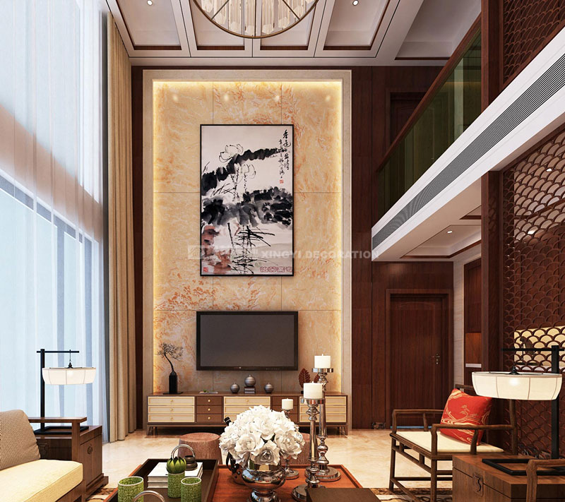 華發(fā)國(guó)賓一號(hào)240平現(xiàn)代中式裝修案例