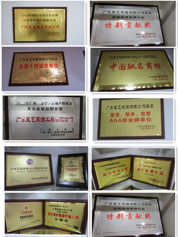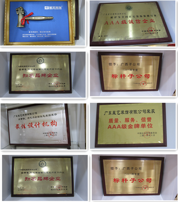 星藝裝飾被中國(guó)房地產(chǎn)協(xié)會(huì)評(píng)為“2008中國(guó)十大裝飾知名品牌”和“2008連續(xù)十年最受消費(fèi)者歡迎企業(yè)”