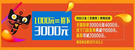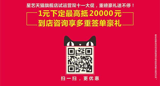 二、簽單有禮:(線上)星藝天貓旗艦店下定1元,可減1000元工程款,最高可抵20000元,具體如下: