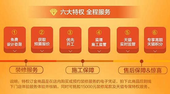 集團總部為更好地為全國客戶提供更便捷優(yōu)質的服務,與天貓強強聯(lián)合,拓寬互聯(lián)網(wǎng)平臺家裝,加強新材料、新工具、新工藝研發(fā)、主材完成集中采購,不斷提升工程品質和服務,提高客戶的體驗滿意度,特在雙11到來之際隆重推出大牌正品星藝裝飾天貓旗艦店盛世起航,為回饋全國新老客戶,特別推出天貓全球雙11家裝狂歡節(jié)特惠購活動。具體優(yōu)惠如下: