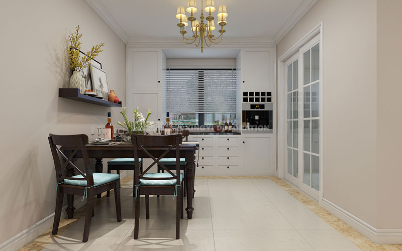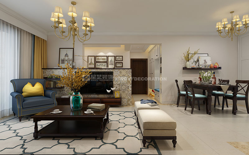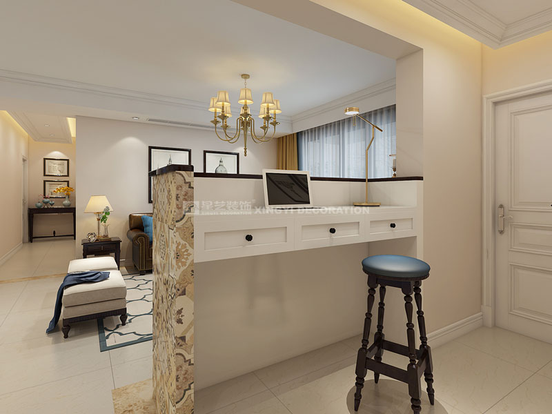 通常所說(shuō),重裝飾,輕裝修,小美式家具和配飾占整個(gè)裝修最重要的部分,既要延續(xù)美式的風(fēng)格,又要體現(xiàn)個(gè)性化。所以在硬裝部分盡量簡(jiǎn)單,減少壁紙、墻圍之類(lèi),吊頂也很平常,無(wú)論墻面、地面、門(mén)窗,大都以淺色為主,重點(diǎn)在后期的家具和飾品搭配上下工夫。