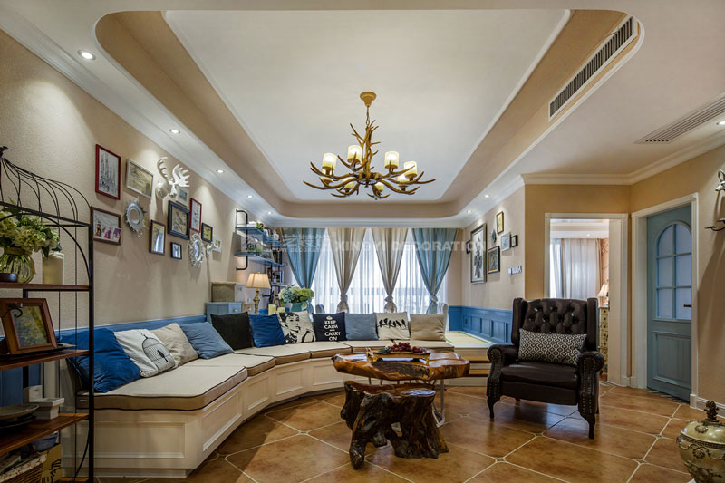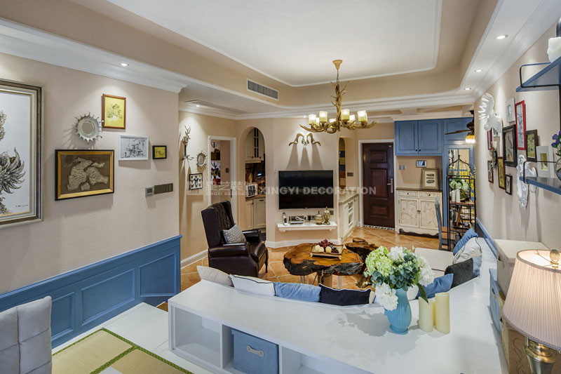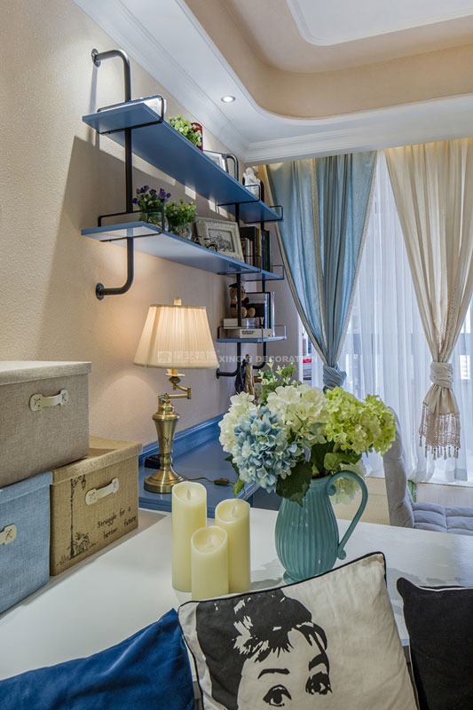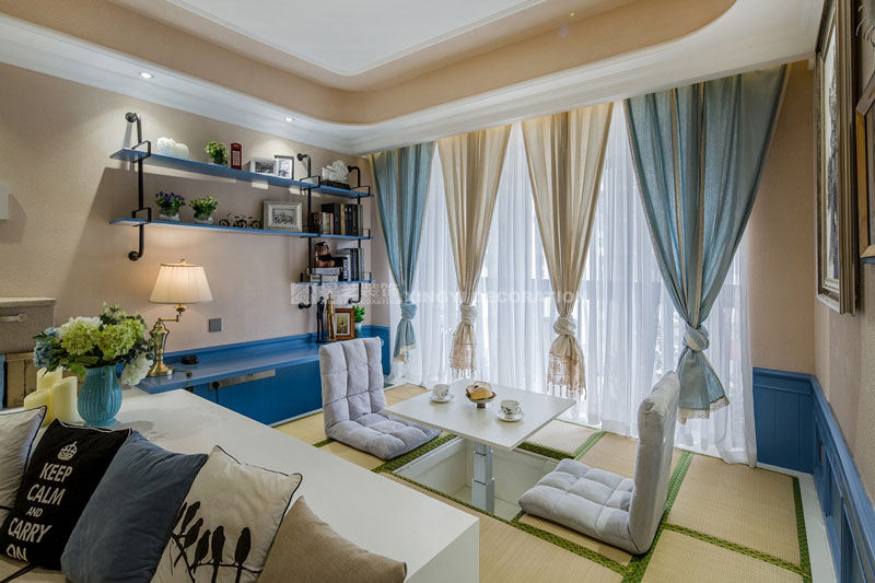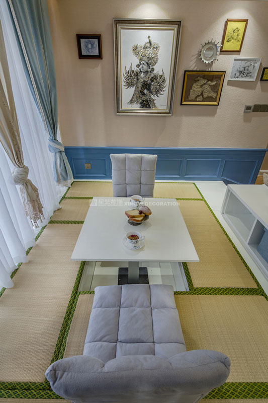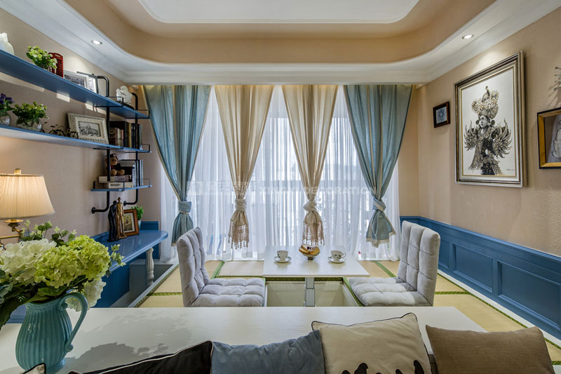 六月里,天是藍(lán)的,樹是綠的,空氣是熱的,冷飲是涼的,陽光是充足的,生活是快樂的。靜靜的坐在榻榻米上溫一壺花茶,與友人談天說地。不經(jīng)多加修飾的保留老物件根藝做茶幾,讓家更顯自然。置身其中仿佛時光能倒流,生活似乎也慢下來。臥室花鳥圖搭配藍(lán)色軟包美麗卻不繁瑣。所有沙發(fā)及書房區(qū)域下邊都設(shè)計強(qiáng)大的儲物功能來滿足小戶型對收納需求?!緦嵕鞍咐龢s獲2017年德高星藝杯設(shè)計大賽工程實景作品提名獎