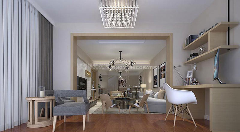 本案是一套160平米的復式樓,由于二樓層高有5.5米的層高,故后期設計的時候現(xiàn)場用鋼筋混泥土搗制,又增加了一層樓的空間,實際是三層樓。父母與兩個小孩同住,即連接又分開,私密空間相對獨立。整個設計力求以最樸素的空間語言來詮釋空間,特別墻化了整體性,避免過多的材質(zhì)模塊組合帶來的突兀感。大面積的柔和色彩是由具有質(zhì)感的木皮帶來的,簡單的空間框架,加上溫暖材質(zhì)的木飾面,在空靈中生出溫暖。