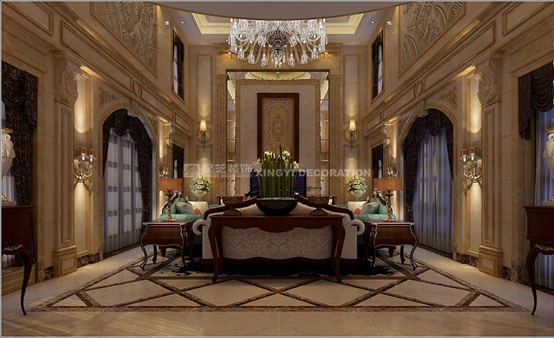 楓林藍(lán)岸600平裝修案例說(shuō)明:該案是個(gè)舊房改造的別墅,因原結(jié)構(gòu)在使用過(guò)程有諸多的不方便及原有裝修的缺陷,我們將戶(hù)型重新做了合理的空間布局,改造使得空間的序列完整。經(jīng)過(guò)調(diào)整,把原有二樓戶(hù)外回廊納入整個(gè)大廳空間里面,使整個(gè)大廳更顯豪華大氣。該案?jìng)鬟f一種低調(diào)奢華的生活方式,既有歐式生活的貴氣與精致,又無(wú)金碧輝煌的浮華。整個(gè)大宅的設(shè)計(jì)理念是奢華主義與現(xiàn)代浪漫主義的完美結(jié)合。流線形與直線相互搭配,現(xiàn)代而奢華的家具精美華麗,明亮的色彩相互交錯(cuò)。所有豪華的家飾,個(gè)性的墻紙相互呼應(yīng),此情此景充斥著浪漫的誘惑力,表現(xiàn)出王者的風(fēng)范。