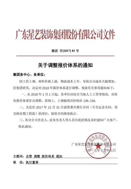 一重、保價簽單工程2018年裝修按2017年標準報價執(zhí)行,決不漲價