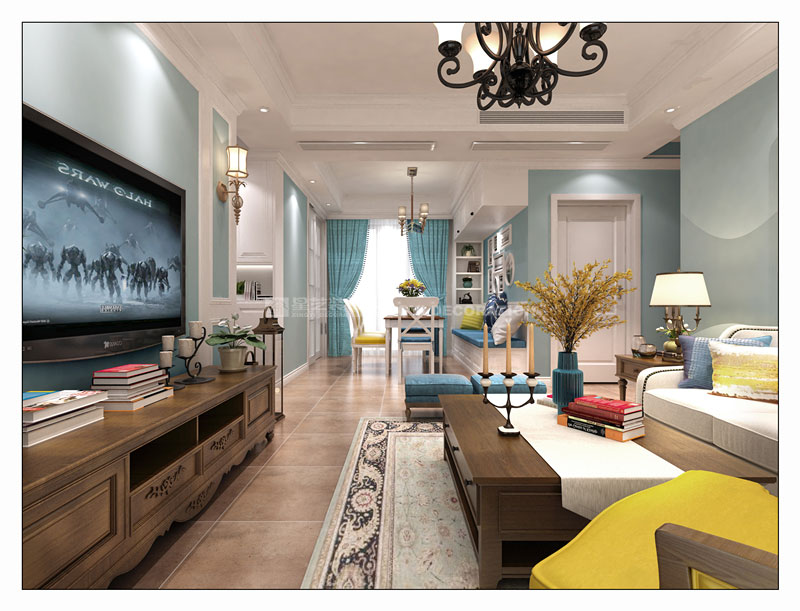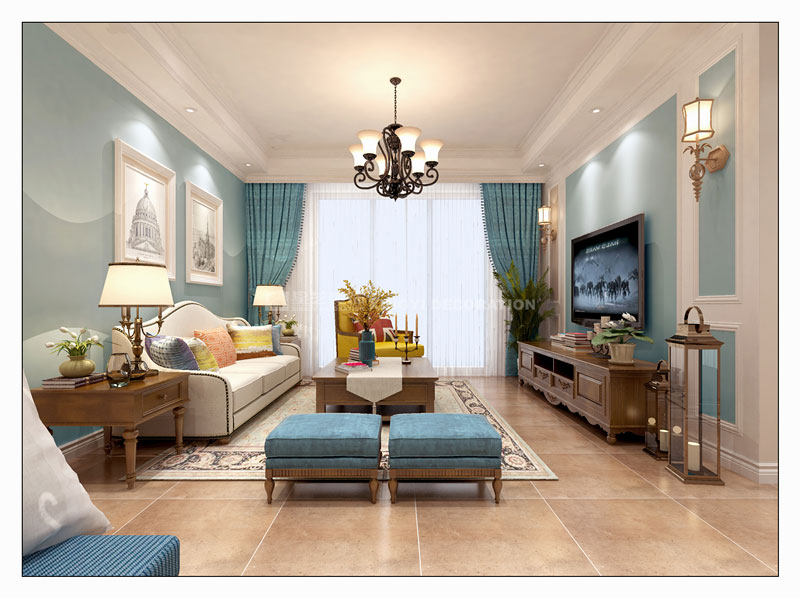 本案設(shè)計(jì)以美式休閑風(fēng)為主,設(shè)計(jì)師對(duì)色彩的運(yùn)用極為嫻熟精深,一去傳統(tǒng)美式厚重古板的色調(diào),以明亮輕快的色彩搭配,使得空間更具靈動(dòng)氣息,既精致又不失溫馨。