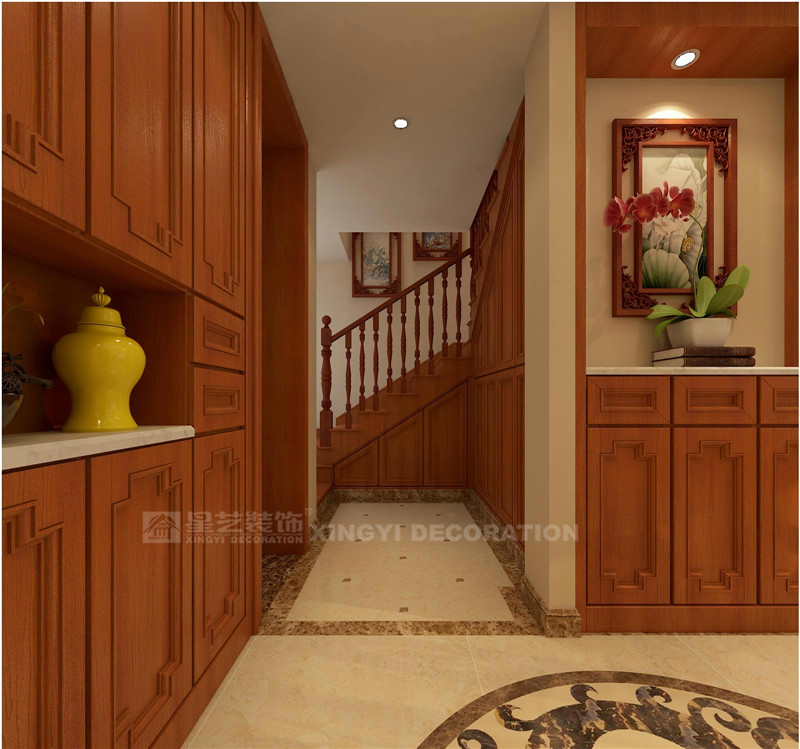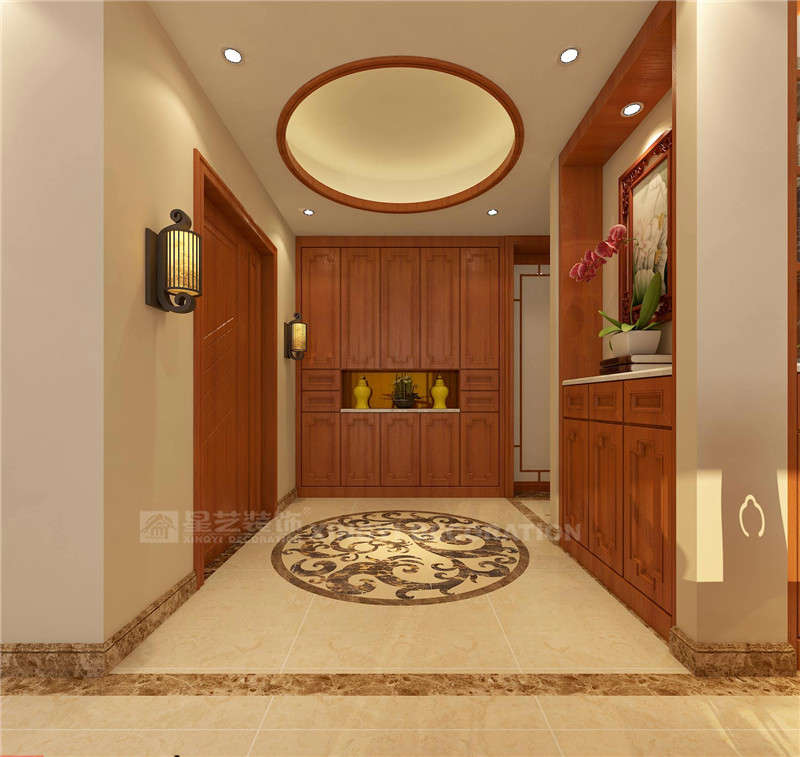 設(shè)計(jì)師在選材上也頗費(fèi)心思,入戶玄關(guān)的精美地面拼花、電視背景墻的卡布其諾大理石、穩(wěn)重的進(jìn)口泰柚木、典雅素美的中式壁紙以及留白簡(jiǎn)化了的吊頂設(shè)計(jì),即明確了空間的基調(diào),又不顯得呆板沉悶。設(shè)計(jì)師用現(xiàn)代的材料營(yíng)造著中式古韻,用現(xiàn)代的設(shè)計(jì)思路來(lái)處理每一種元素和符號(hào),用現(xiàn)代的設(shè)計(jì)語(yǔ)言來(lái)表達(dá)對(duì)中國(guó)文化的理解與感受。