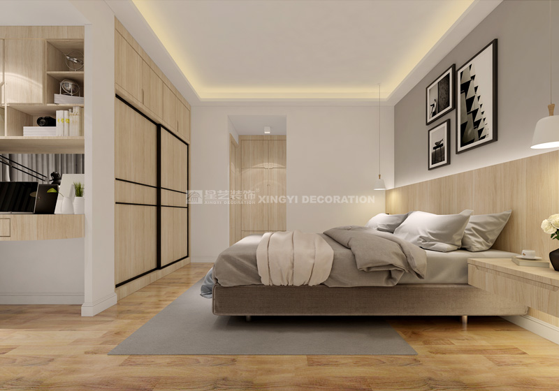 這是一對90后年輕夫婦的新居,業(yè)主喜歡日式的簡約,又愛北歐的休閑,因此整體風(fēng)格上定位為日系北歐風(fēng)。設(shè)計手法上運用干練的直線條進行裝飾,還運用了大量的淺木色調(diào),使整體空間既干練又不失舒適感,營造一直簡約貼近自然的空間氛圍。