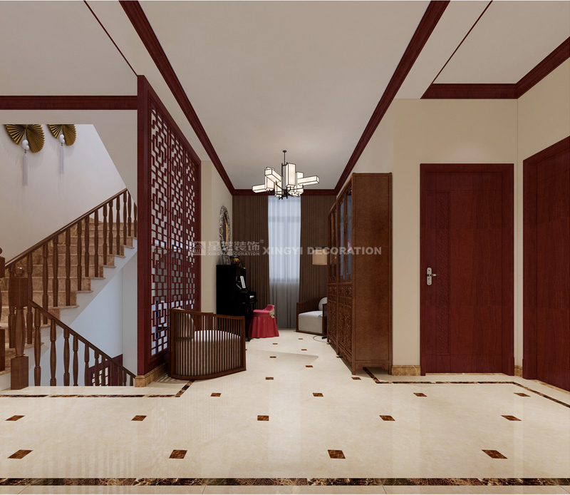 南寧星藝裝飾甘盧華設(shè)計(jì)師專(zhuān)業(yè)設(shè)計(jì)的350平別墅中式裝修案例