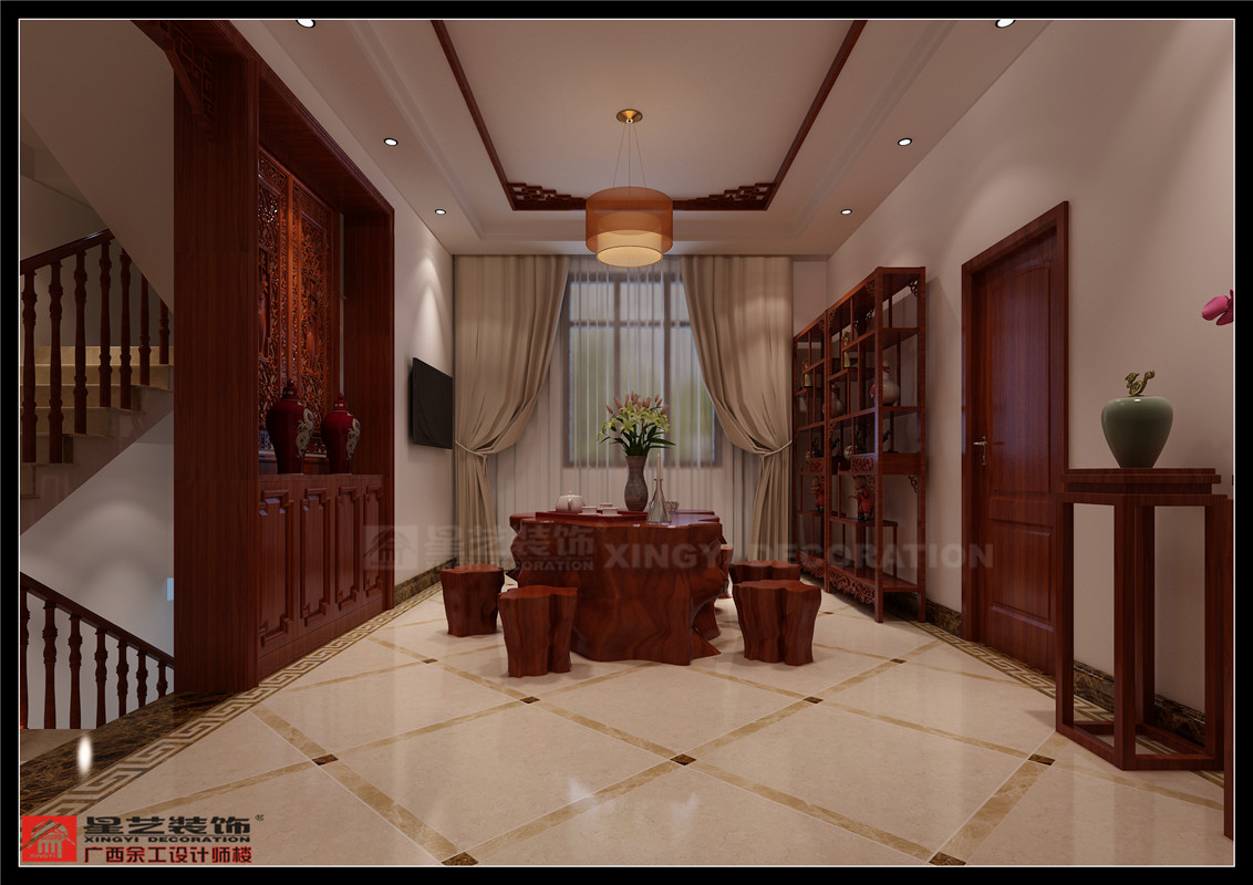 本案位于扶綏馬場(chǎng)別墅,業(yè)主是一對(duì)中年夫婦,風(fēng)格要求為中式。在生活此一主體核心下,這棟別墅的設(shè)計(jì)除了滿(mǎn)足功能,舒適等基本課題之外,更注重家庭成員需求而做各項(xiàng)規(guī)劃;如方便存取的梯底儲(chǔ)藏空間,寬闊的廚房,兒童娛樂(lè)區(qū),茶藝區(qū)等。特意保留后院的一片菜園綠地,扮演居室與外在環(huán)境之間的舒緩帶,希望以一種自在的態(tài)度來(lái)貫徹居住者與空間的關(guān)系,透過(guò)細(xì)膩設(shè)想與情感回憶,為居家鋪設(shè)真實(shí)的幸福感。
