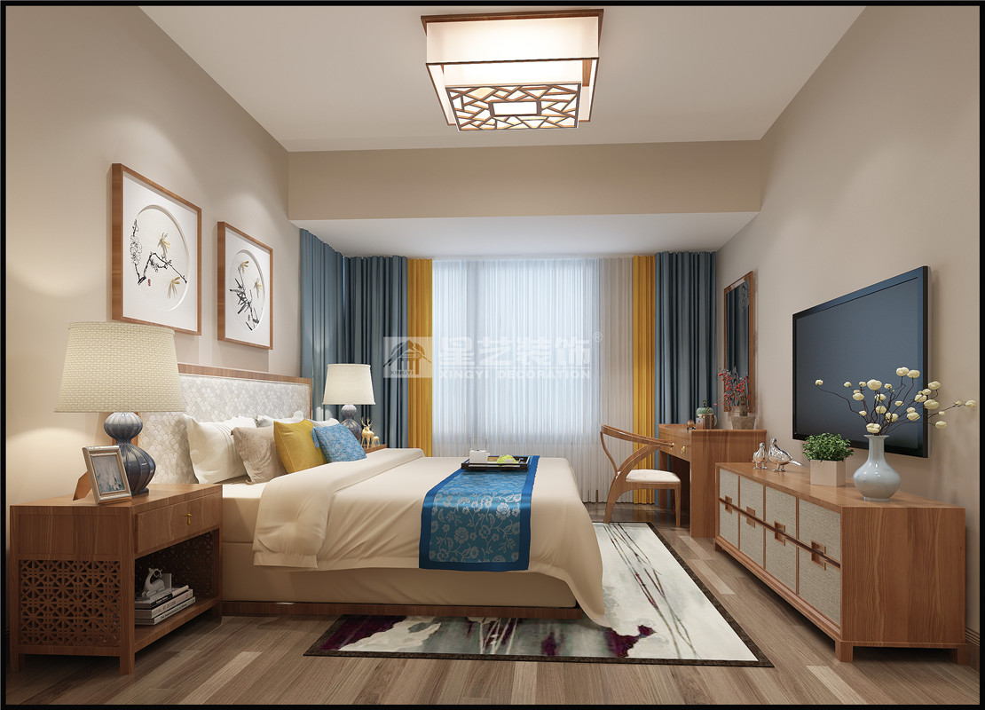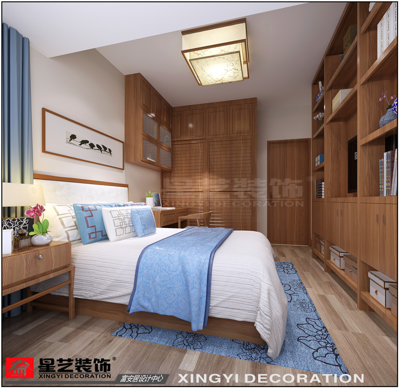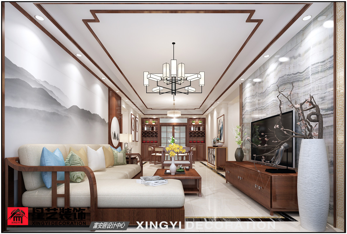 南寧星藝裝飾設(shè)計師專業(yè)設(shè)計的瀚林學(xué)府130平中式風(fēng)格裝修案例,山水畫的硅藻泥,水紋磚上墻,中式裝飾畫的營造,及頂面紅木色的實木線條,追求中式的內(nèi)斂、樸素。
