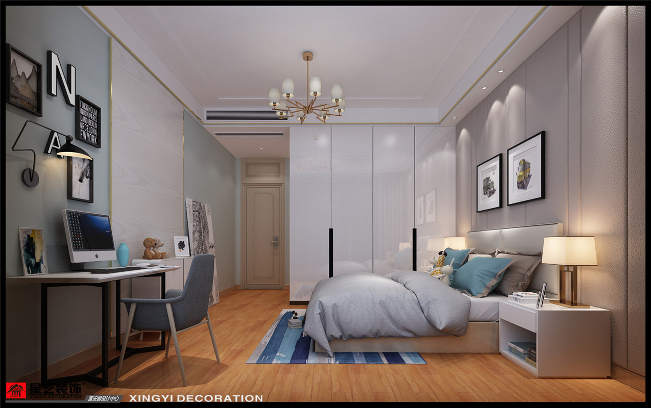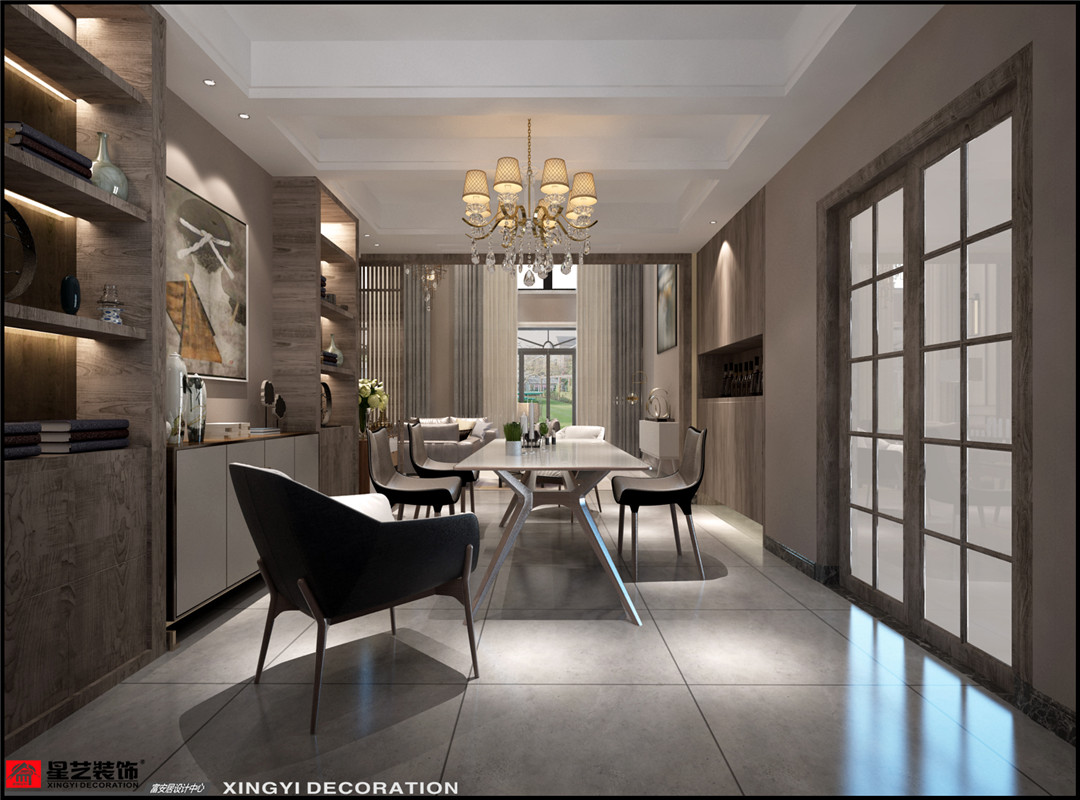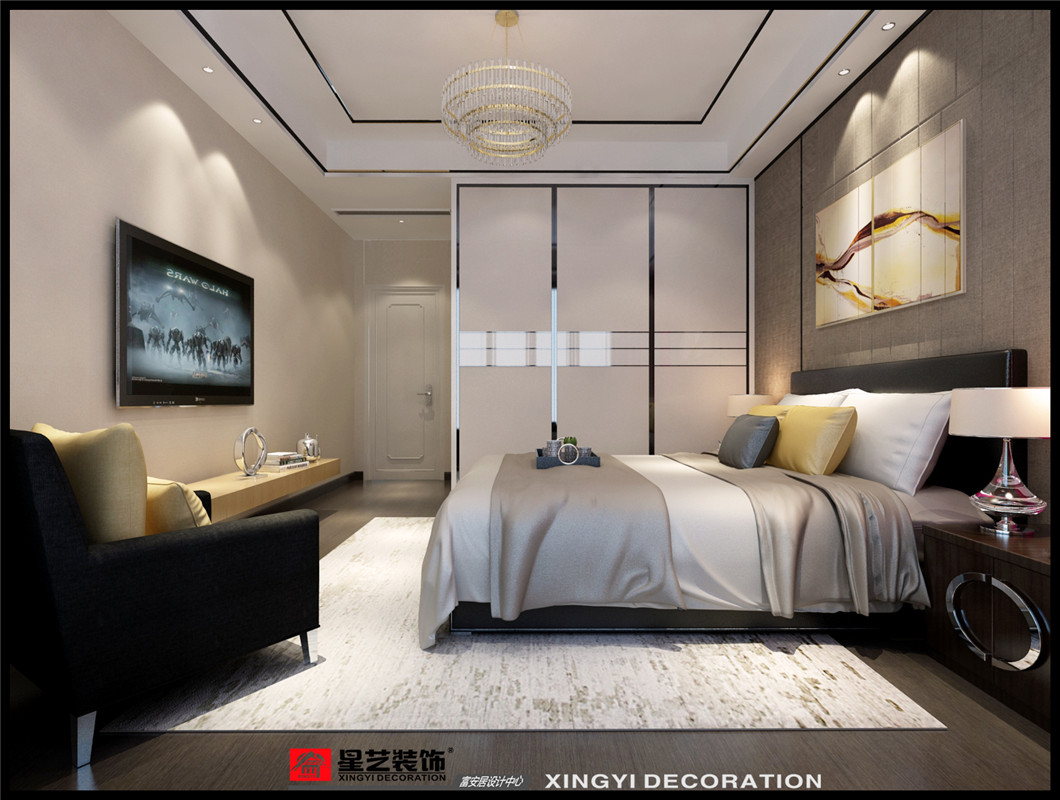 在裝飾效果中我們我們去繁就簡,沒有選擇用太多繁瑣的線條去給家進行修飾?;疑淖o墻板和山水畫式的大理石瓷磚及大理石的線條做客廳背景墻造型,體現出男主人家的不“俗”品味。整體灰色的格調通過燈光的渲染體現出空間里地面、墻面、天畫面不同的層次感。