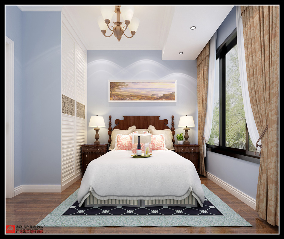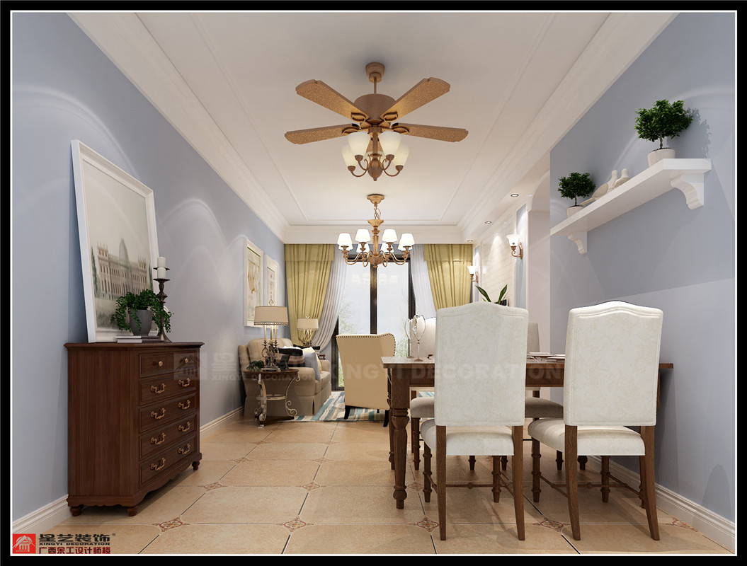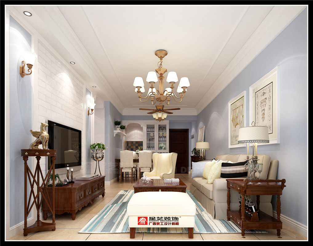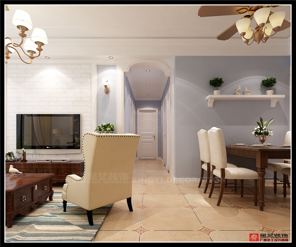 南寧星藝裝飾李忠華設(shè)計師專業(yè)設(shè)計的保利領(lǐng)秀前城108平美式風(fēng)格裝修案例