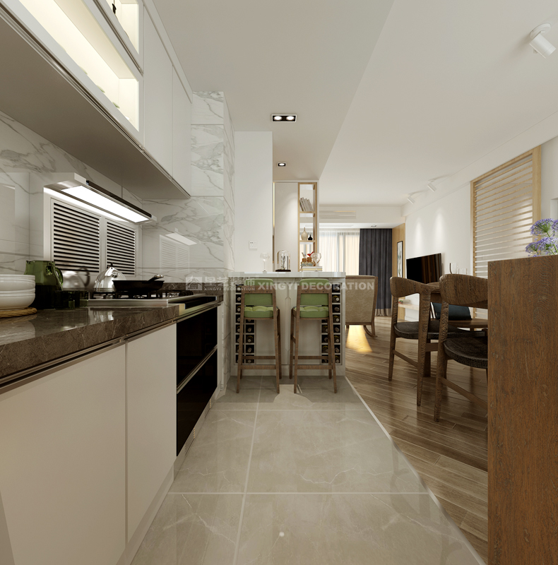 南寧星藝裝飾拜倩設(shè)計(jì)師專業(yè)設(shè)計(jì)的華潤二十四城110平現(xiàn)代北歐裝修案例,此工程項(xiàng)目為三房二廳二衛(wèi)一廚的多層住宅.室內(nèi)使用面積為90. m2. 交通方便,環(huán)境優(yōu)美,業(yè)主為一電氣工程師,夫妻兩人,女主人喜歡做瑜伽,烹飪,希望新家的設(shè)計(jì)中餐廳做開放式廚房,用餐做飯的時(shí)候增加全家的互動(dòng)。