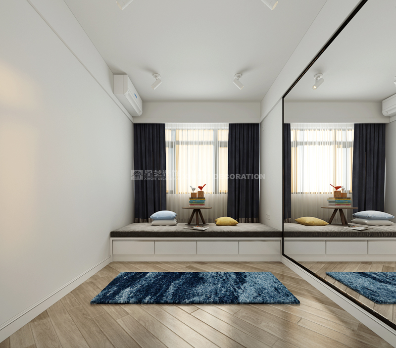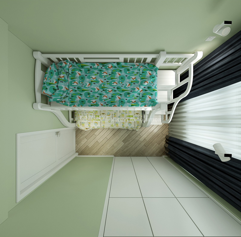 本案設(shè)計(jì)師以簡潔明快的北歐設(shè)計(jì)風(fēng)格為主調(diào),全面考慮,在總體布局方面,盡量滿足業(yè)主生活上的需求。首先在功能方面,要充分滿足業(yè)主的生活要求,鞋柜是功能方面的一個(gè)重要元素,因?yàn)槿霊暨^道給人的感覺較窄,因此窄入戶左手邊墻面加銀鏡,從視覺上增加空間感。鞋柜貼著銀鏡做玄關(guān)柜,整個(gè)空間整齊干凈。客廳是交友娛樂中心,懸掛的層板設(shè)計(jì),既大方又有感覺,客廳沙發(fā)背景墻面色彩為咖啡色,屬暖色調(diào)。胡桃木與黑皮革的結(jié)合使得空間大氣又不失時(shí)尚,在餐廳和客廳之間的墻面做一個(gè)景點(diǎn),設(shè)計(jì)了一個(gè)1米*2.4米 到頂?shù)耐评夷靖魯?,不用的時(shí)候隔斷就是電視背景的裝飾, 廚房衛(wèi)生間均按現(xiàn)代,舒適,衛(wèi)生,環(huán)保標(biāo)準(zhǔn)進(jìn)行設(shè)計(jì)。兒童房突出個(gè)性,床后的墻面涂果綠色的多樂士環(huán)保涂料,加以燈光配合,充分顯示青春活力。