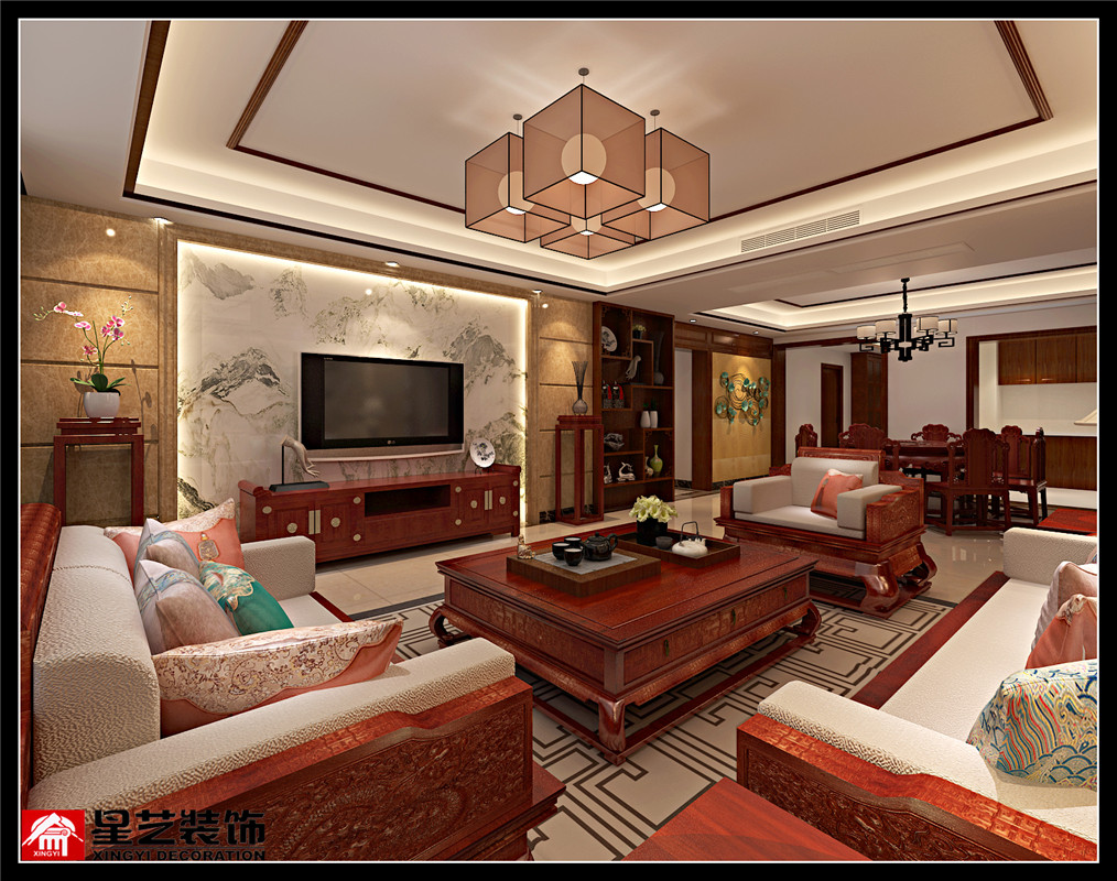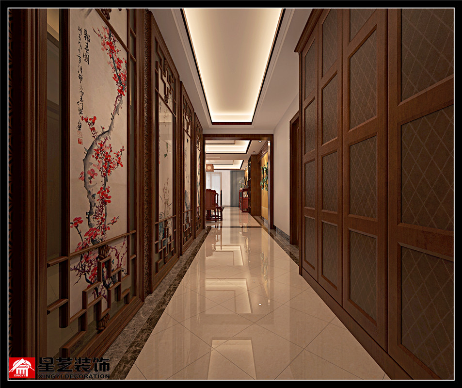 南寧星藝裝飾馬瓏萍設(shè)計(jì)師專(zhuān)業(yè)設(shè)計(jì)的保利大江郡180平中式風(fēng)格裝修案例,這位業(yè)主非常有意思,是名四川人在廣西定居,有一對(duì)非常靈氣的龍鳳胎,她把兩個(gè)大套間讓出來(lái)給兒女住,自己住稍微小一點(diǎn)的房間,面朝陽(yáng)臺(tái),偶爾早晨可以朝江做做瑜伽,十分愜意。由于是精裝房,因此原結(jié)構(gòu)沒(méi)有調(diào)動(dòng),客戶喜歡傳統(tǒng)中式的味道,定位為中式風(fēng)格,全房裝飾主題圍繞著山水、花卉、喜鳥(niǎo)、營(yíng)造一種詩(shī)情畫(huà)意的意境,小孩房則依據(jù)年輕兒女喜好做了偏為時(shí)尚的設(shè)計(jì)。在入戶長(zhǎng)過(guò)道的設(shè)計(jì)上,我花了個(gè)小心思,將業(yè)主名字中帶的菊字容入設(shè)計(jì)中,把入戶長(zhǎng)過(guò)道打造成了畫(huà)廊,以木飾雕花作畫(huà)框,加入黑鏡,帶些靈動(dòng),畫(huà)框內(nèi)裱上梅蘭竹菊的中式水墨畫(huà),悠然雅致。