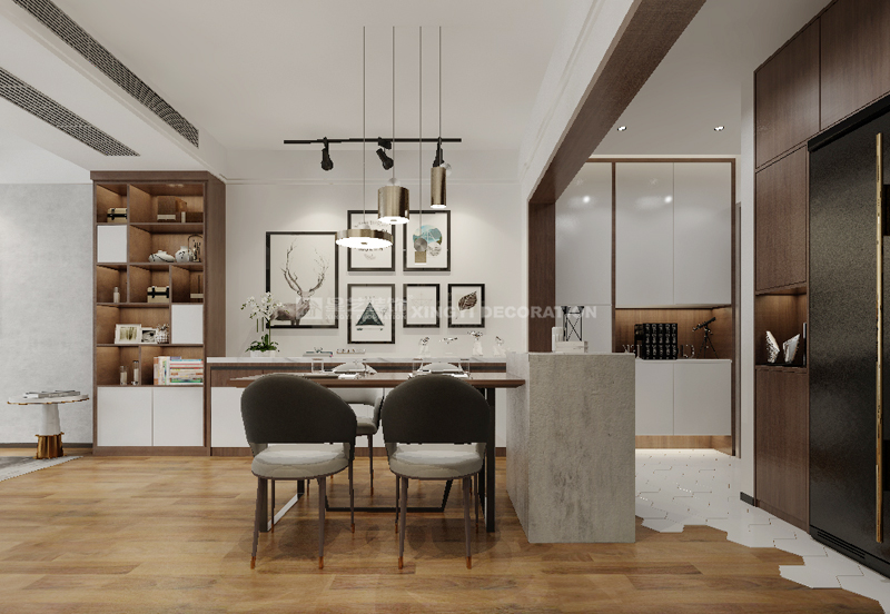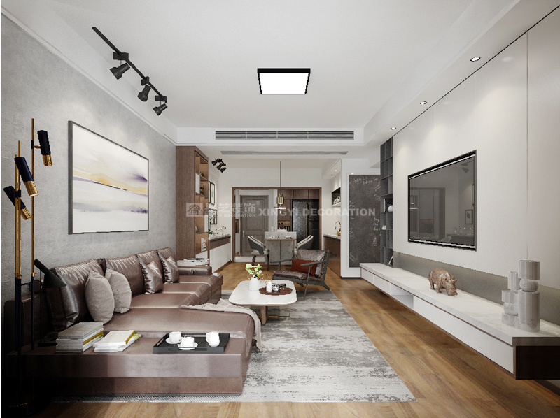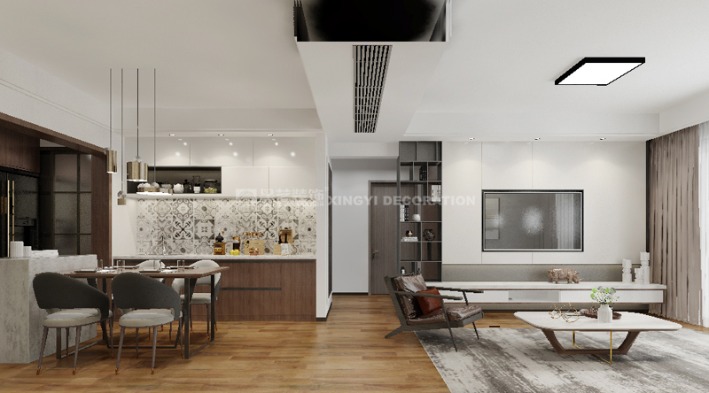 南寧星藝裝飾曾相山設(shè)計師專業(yè)設(shè)計的瀚林學府90平現(xiàn)代簡約裝修案例,客戶大概30歲左右,比較喜歡時尚的設(shè)計,所以設(shè)計了比較簡單時尚的一套裝修,業(yè)主平時喜歡自己做輕食,所以在餐廳特意設(shè)計了吧臺以及西廚