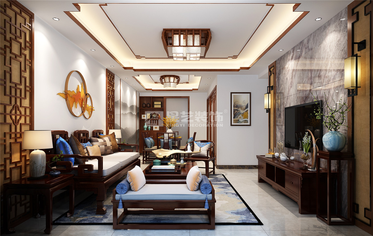 業(yè)主是三代同堂的改善性住房,對(duì)中式文化有很深的感情,喜歡較雅致的新中式風(fēng)格