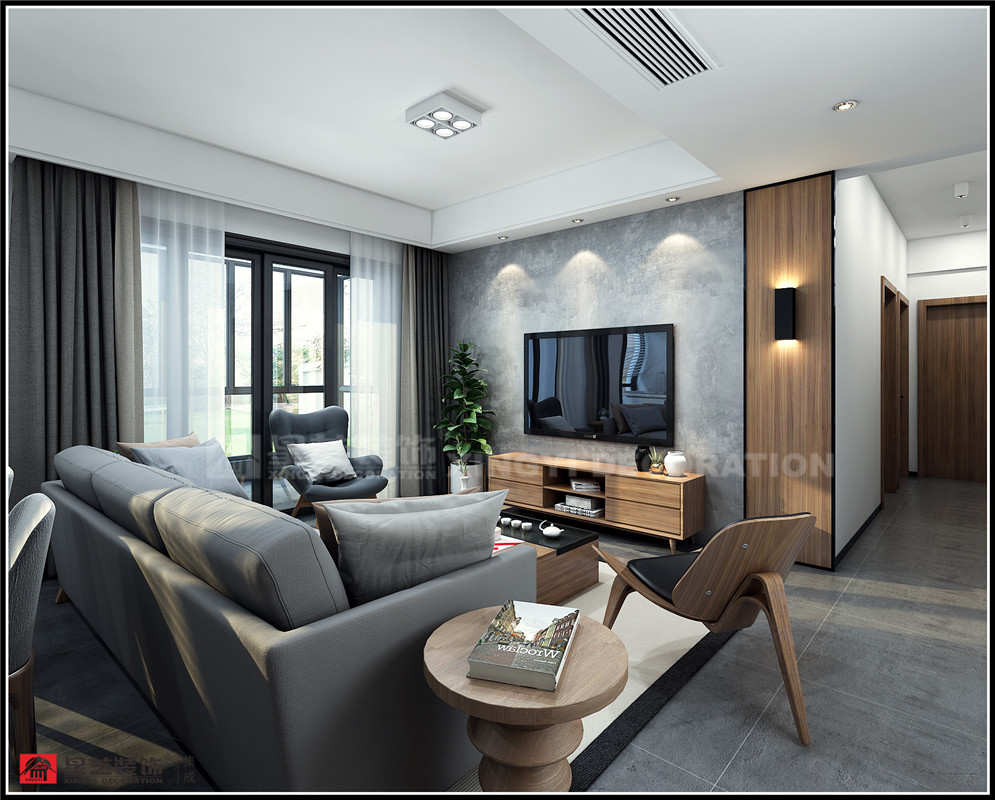 本方案為現(xiàn)代簡約風(fēng)格,運用原始墻面水泥層,結(jié)合胡桃木色,體現(xiàn)了自然,舒適