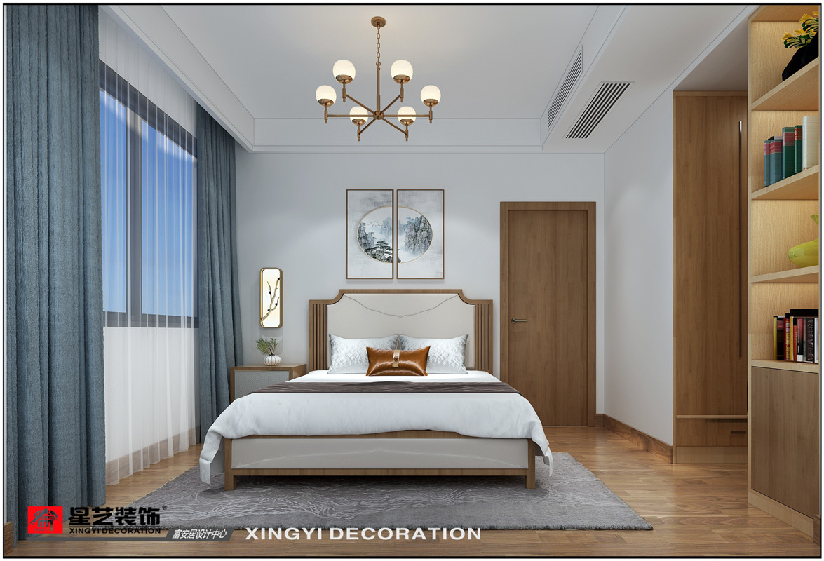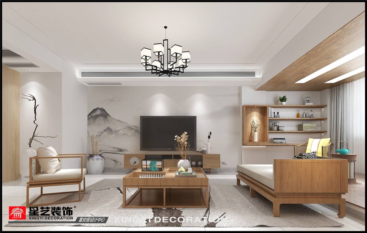房子為一家五口人居住,業(yè)主夫妻二人,一個女兒以及兩位老人共同居住。業(yè)主喜歡原木色,希望家里面更清新自然,喜歡中式的感覺但是不希望家里用色太沉重,以清爽明亮為主。最后設(shè)計定稿為淺色調(diào)的新中式風(fēng)。立面沒有過多裝飾,以墻布為主要裝飾材質(zhì),大面積的山水意境圖墻布搭配大面積的白色墻面,簡約又不失中式意境。
