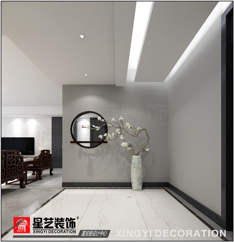 業(yè)主是一位90后妹子,房子為父母贈與的婚房,同時父親贈送一套紅酸枝十件套沙發(fā)及餐桌椅,為了搭配起這套家具,把風格定為新中式風格。要求不要過于中式,希望簡約有意境??紤]到業(yè)主年紀較輕,傳統(tǒng)的中式風格與其不符,業(yè)主又喜歡冷色調(diào),因此在設計上采用了黑白灰為主調(diào)的新中式風格。以塊面色彩作為裝飾的主要手法,搭配具有中式元素的小裝飾,大面積的白墻搭配黑色護墻板,黑白碰撞使空間層次分明,大面積灰色地面作為過度色彩,令空間既有中式韻味又不乏現(xiàn)代風格的簡練大氣之感。