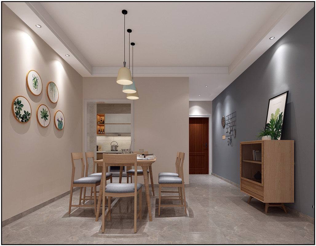 客戶要求做一個開放式廚房,餐廳希望有一個圓桌象征團團圓圓,喜歡中式家具又不希望做出來的感覺過于厚重。我們?nèi)ガF(xiàn)場看過以后,現(xiàn)場客餐廳的采光不是很好,格局的改動不會很大,我們把入戶進來的墻體打掉做了開放式的廚房,U字型的櫥柜加吧臺使廚房整體的空間格局更加實用,同時光線也解決了光線不好導致廚房餐廳過于太暗的問題,因為考慮業(yè)主喜歡中式家具,但是又要現(xiàn)代簡約風格,我們考慮用暖色系的瓷磚、墻面飾面板和淺色系硅藻泥的機理來吧客戶后期買回來中式家具給顯襯出來,使整體空間看上去不會因為中式家具的獨特而格格不入,更加舒適。