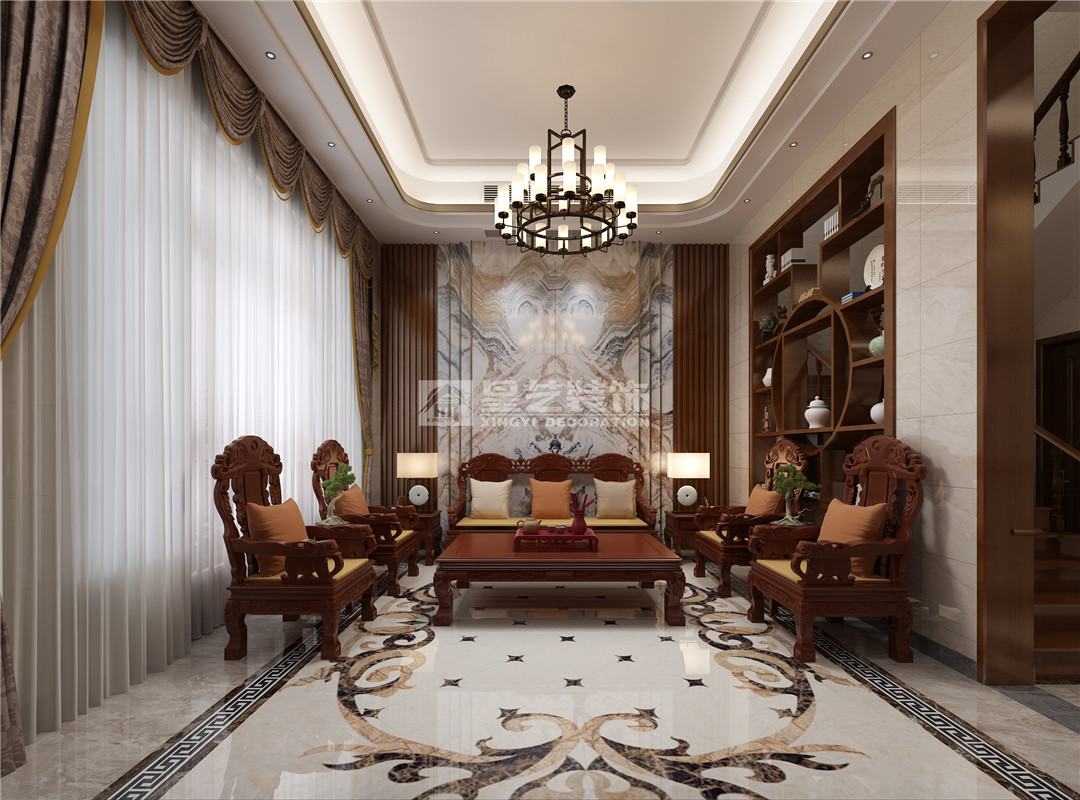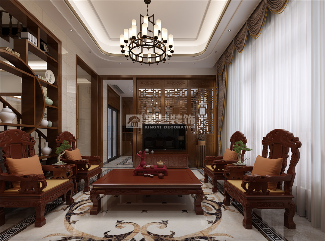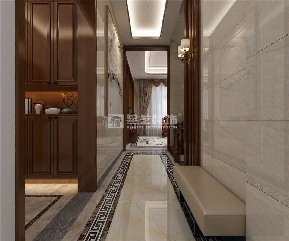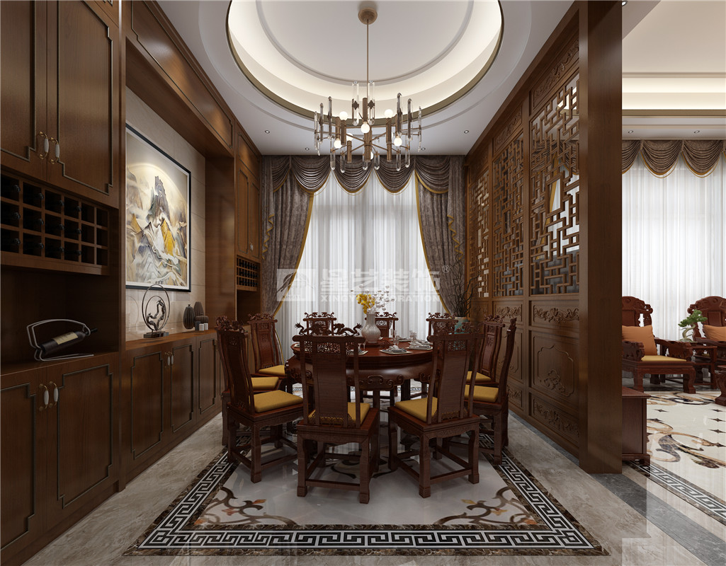 中國文化很重要的一部分是傳承文化,業(yè)主說希望家里東西以后是可以傳承下去,具有收藏和紀(jì)念的意義,那么我們想到了紅木家具、古董、瓷器類,經(jīng)過多方面綜合考慮和業(yè)主的溝通將房屋設(shè)計(jì)的風(fēng)格定位為中式風(fēng)格。設(shè)計(jì)中采用了石材、玫瑰金不銹鋼金屬條、花格隔斷、仿木紋地磚,鋼化玻璃等材質(zhì)。