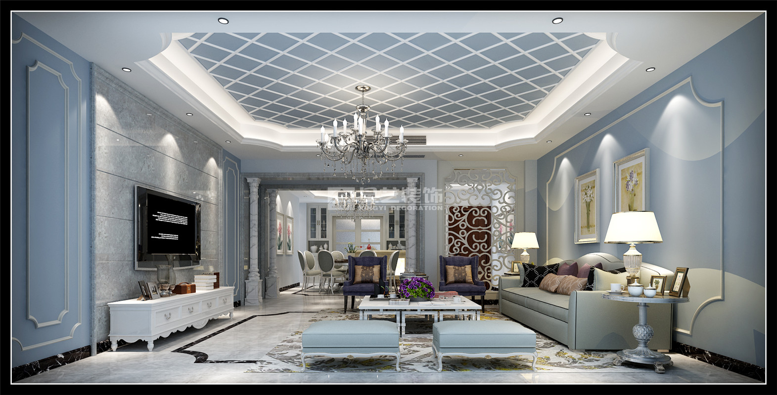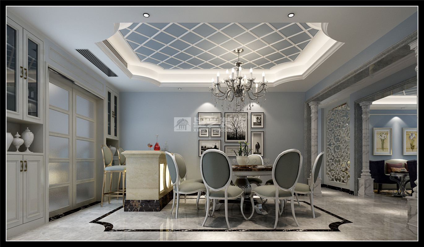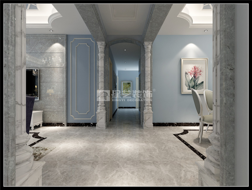 低調(diào)奢華的場域氛圍,可以由材質(zhì)、顏色、家具、飾品軟件等組構(gòu)而成。再通過細膩的手法有效安排的格局,以"生活"的設(shè)計的基調(diào),衍生出空間典雅不凡的專屬精致景況。本案為五居室,新古典風格,融合古典與現(xiàn)代的設(shè)計元素。家具線條清晰、明朗,與墻體經(jīng)典圖案相互呼應。全室以沉穩(wěn)的冷色和灰色為基調(diào),應用空間產(chǎn)生出內(nèi)斂感,奢華感的新古典風格。