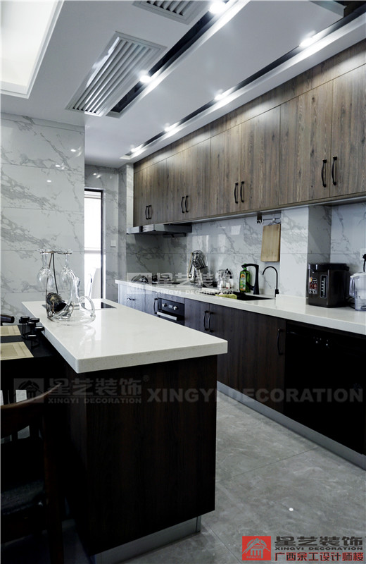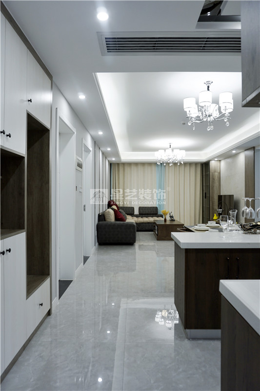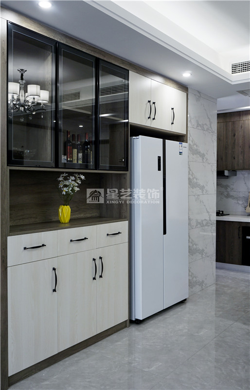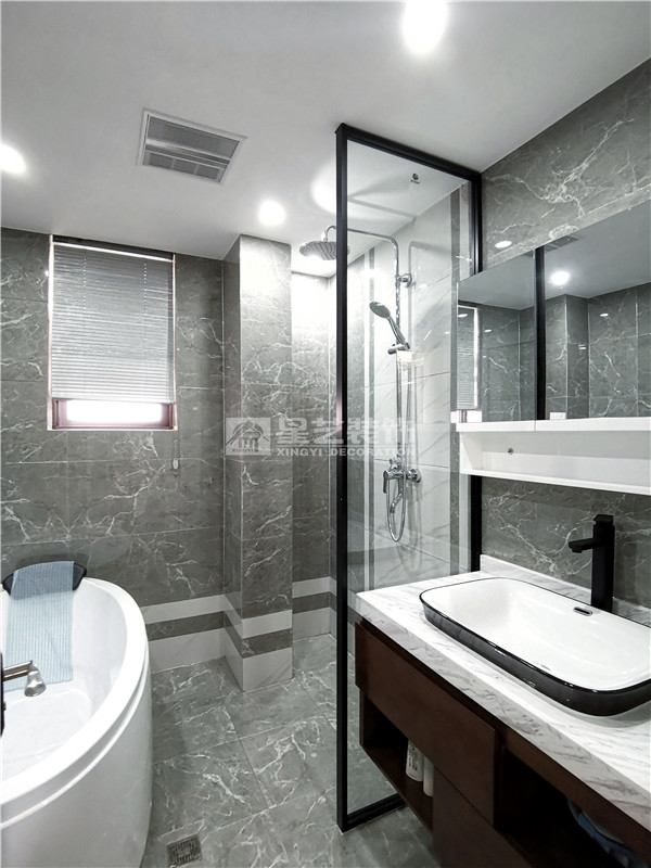 也正因為業(yè)主十分信任星藝,所以星藝也回以高品質(zhì)的服務(wù);在溝通設(shè)計時,業(yè)主想把自己房子的空間合理規(guī)劃好,希望設(shè)計得簡單實用、收納性極強(qiáng),滿足日常生活所需?;诖它c,設(shè)計師設(shè)計時便以現(xiàn)代風(fēng)格為主調(diào),用黑色線條分割大塊灰色色塊,搭配原木色家具和別具一格的收納柜,用小部分亮色點綴,整個空間看起來既時尚又不失溫馨實用??紤]到臺灣同胞極為講究人與人之間相處的溫情,是以廚房設(shè)計成開放式,用島臺將餐廳和廚房隔開,既能滿足家人間的互動,也有助于朋友間小酌的簡單社交需求。臥室也延續(xù)了現(xiàn)代風(fēng)格的極簡設(shè)計,大塊暖色系的色塊搭配亮色的軟裝和畫飾,勾勒出輕松溫馨的氛圍,更助益于睡眠。書房的設(shè)計業(yè)主也十分看重,因為有時候迫不得已需要在家辦公,所以在設(shè)計的時候設(shè)計師既要滿足了業(yè)主想要的強(qiáng)大收納,也要滿足業(yè)主休閑式的閱讀和辦公。衛(wèi)生間設(shè)有浴缸,沐浴時泡個熱水澡,一去白天里生活瑣碎的疲憊。大到客廳,小到衛(wèi)生間,不難看出業(yè)主是個極為注重生活品質(zhì)的人,而這正與星藝裝飾所追求的品質(zhì)家居理念所契合,無論是生活品質(zhì),亦或是產(chǎn)品品質(zhì),皆是客戶所想,星藝所精,經(jīng)典設(shè)計,為愛筑巢。