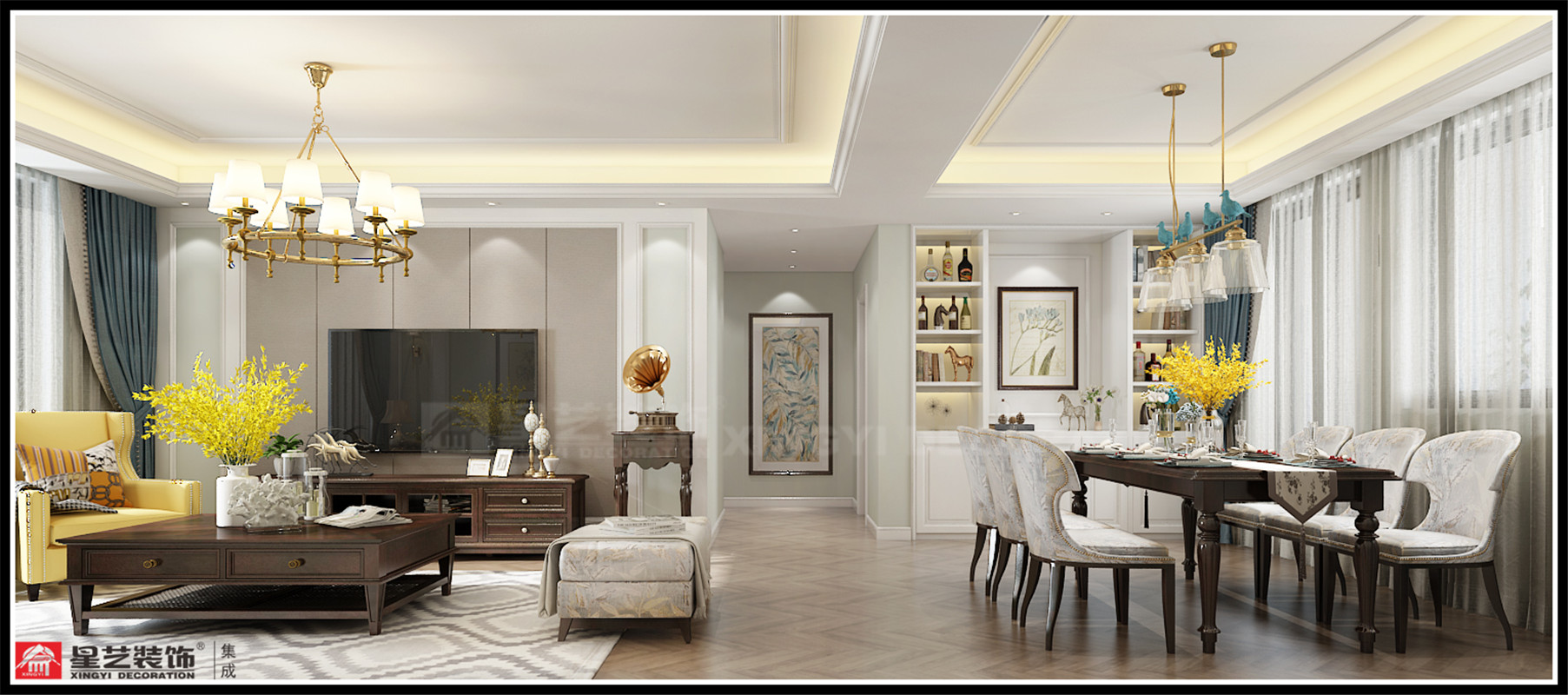 榮和山水綠城140平裝修案例【美式】