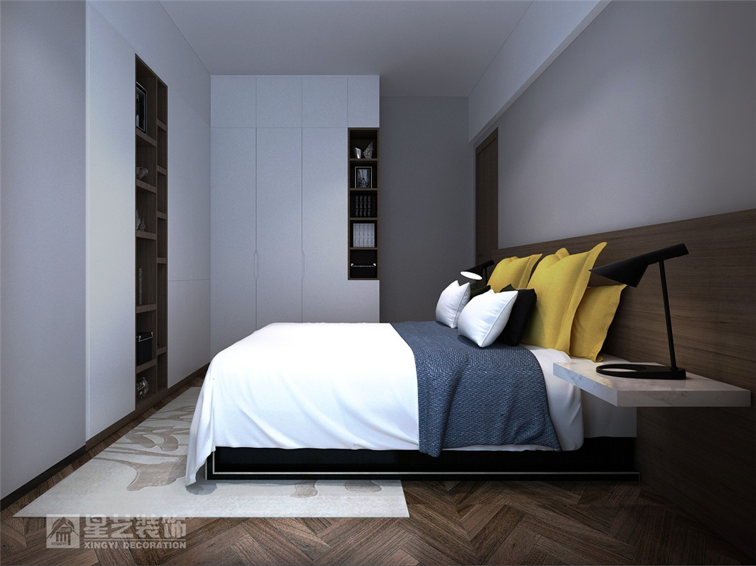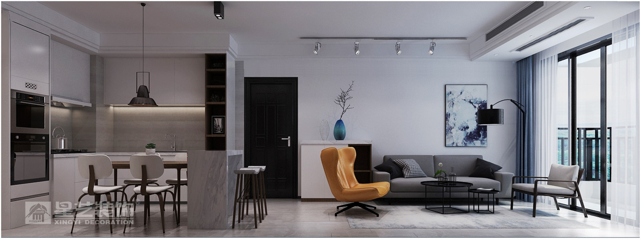 此案為民歌湖湖景房,戶型本為一房兩廳公寓,經(jīng)過改造成兩房兩廳,鑒于戶型不大,所以選擇做開放式廚房,讓廚房成為空間的一個亮點,整體設計摒棄復雜造型修飾,黑白灰色調(diào)使得整個空間靜謐舒適,午后慵懶時光得以表現(xiàn)