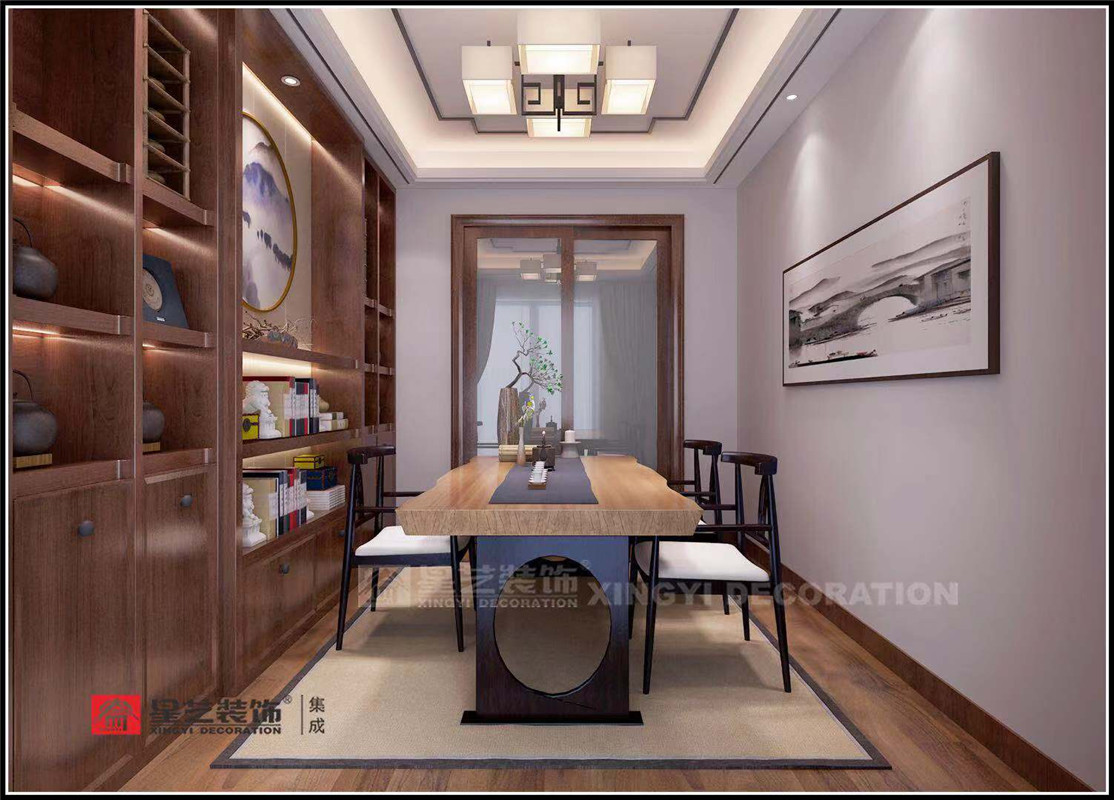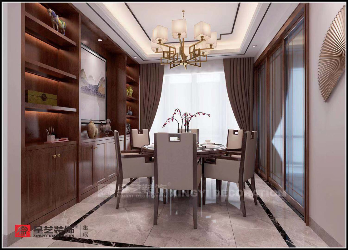 現(xiàn)實(shí)生活中,我們每天忙著同時(shí)間賽跑,忙著追逐名利。自我的迷失,身心的失衡讓我們?cè)絹?lái)越浮躁。都市的喧囂與繁忙,不該是生活的全部,再忙,也要有一個(gè)安放心靈的空間,閑暇處才是生活。溫潤(rùn)質(zhì)感、低彩度的細(xì)膩,將生活形態(tài)和美學(xué)意識(shí)轉(zhuǎn)化成一種無(wú)聲的設(shè)計(jì)語(yǔ)言。大而不空、厚而不重輕描淡寫地幾筆點(diǎn)綴,畫中有畫,景中有景,帶給一家人舒適優(yōu)雅的用餐環(huán)境。