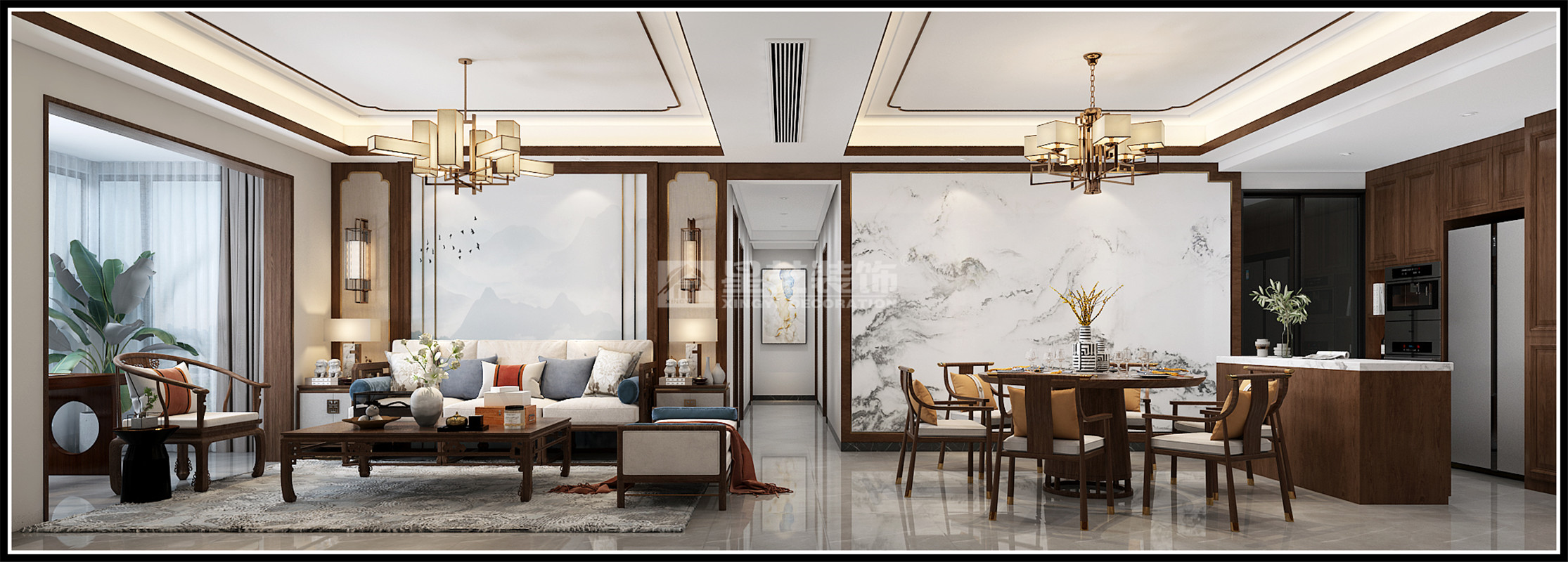 路橋錦繡新城128平裝修案例【新中式】
