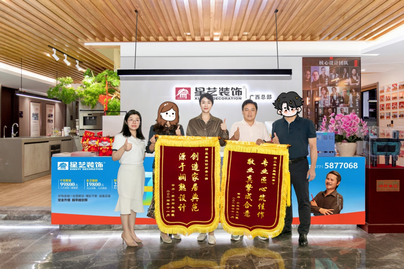 近日,星藝裝飾迎來了一個充滿喜悅和榮譽(yù)的時刻。中房翡翠時光小區(qū)的一位業(yè)主特地送來兩幅錦旗,以表彰我們團(tuán)隊在裝修項目中的卓越表現(xiàn)。這兩幅錦旗分別贈與設(shè)計師李欣倩和項目經(jīng)理陳景奇,內(nèi)容分別為:“源于嫻熟設(shè)計 創(chuàng)造家居典范”和“敬業(yè)真摯成合意 專業(yè)匠心筑佳作”。