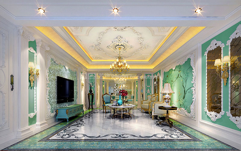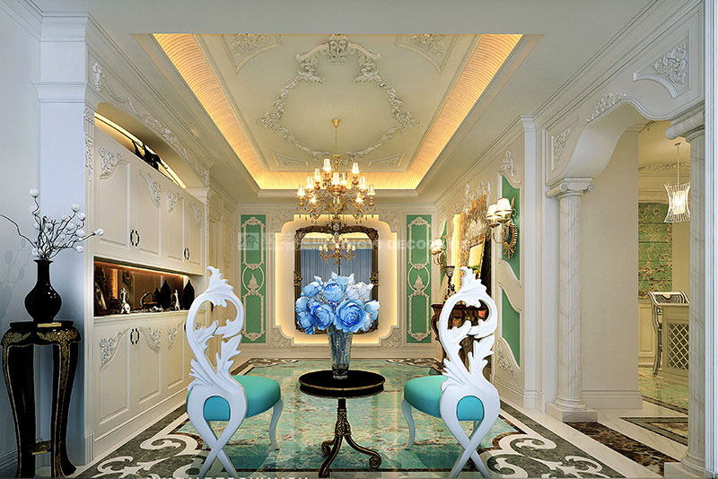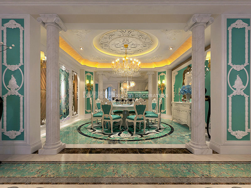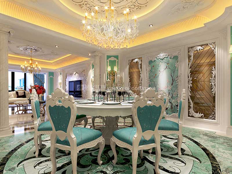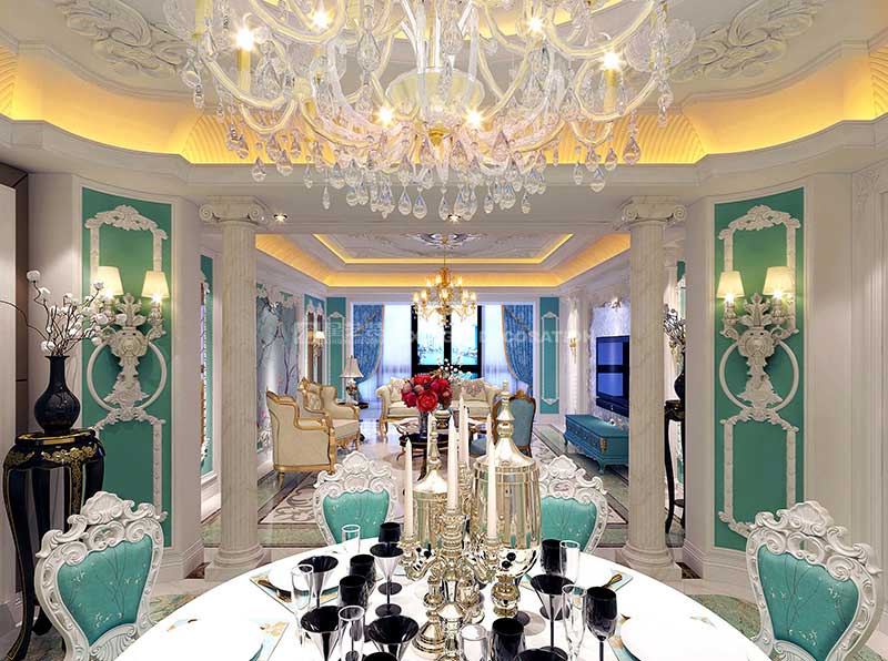 本案位于南寧市南湖公園全湖景旁,項目位置非常理想。因男女主人都有海外學習和生活經(jīng)歷,故此套案例與業(yè)主進行長時間溝通后,風格定位為法式浪漫主義風格。需反映出業(yè)主在法國溫馨優(yōu)雅的生活風尚。多數(shù)人都羨慕不已的生活藝術(shù)!作品在當代人的生活方式不斷變化的今天,在以白、藍為主的色調(diào)中,熱情奔放的紅玫瑰、明亮的湖藍調(diào)、新鮮的綠、跳動的古銅黃、絨的溫情、紗幔的柔美等不同色調(diào)及不同材質(zhì)的混搭,彰顯了藝術(shù)之家對生活的熱愛,及純粹獨特的浪漫情懷。在布局上不僅要求有貴族氣勢,而且舒適中帶有浪漫的情調(diào)。細節(jié)處理上運用了法式廊柱、雕花、線條制作工藝精細考究以及豐富的裝飾語言,模糊了空間的界限,餐廳晶瑩剔透的吊燈散發(fā)出曼妙的光芒,精致唯妙的餐具與燭臺的碰撞,提升了空間氣質(zhì)。一點一滴將貴族般的品味融于生活中,展示著一種獨特動人心魄的美。